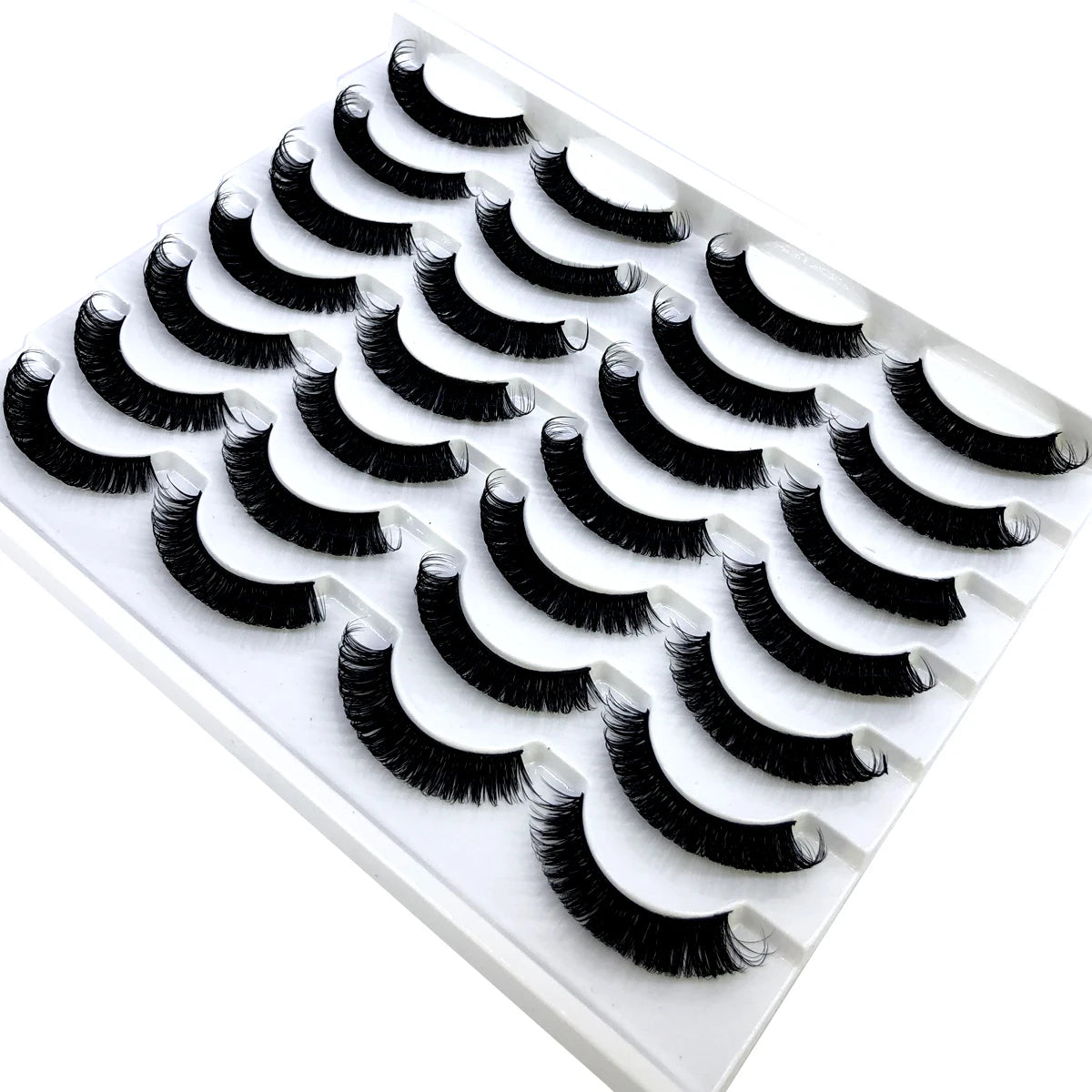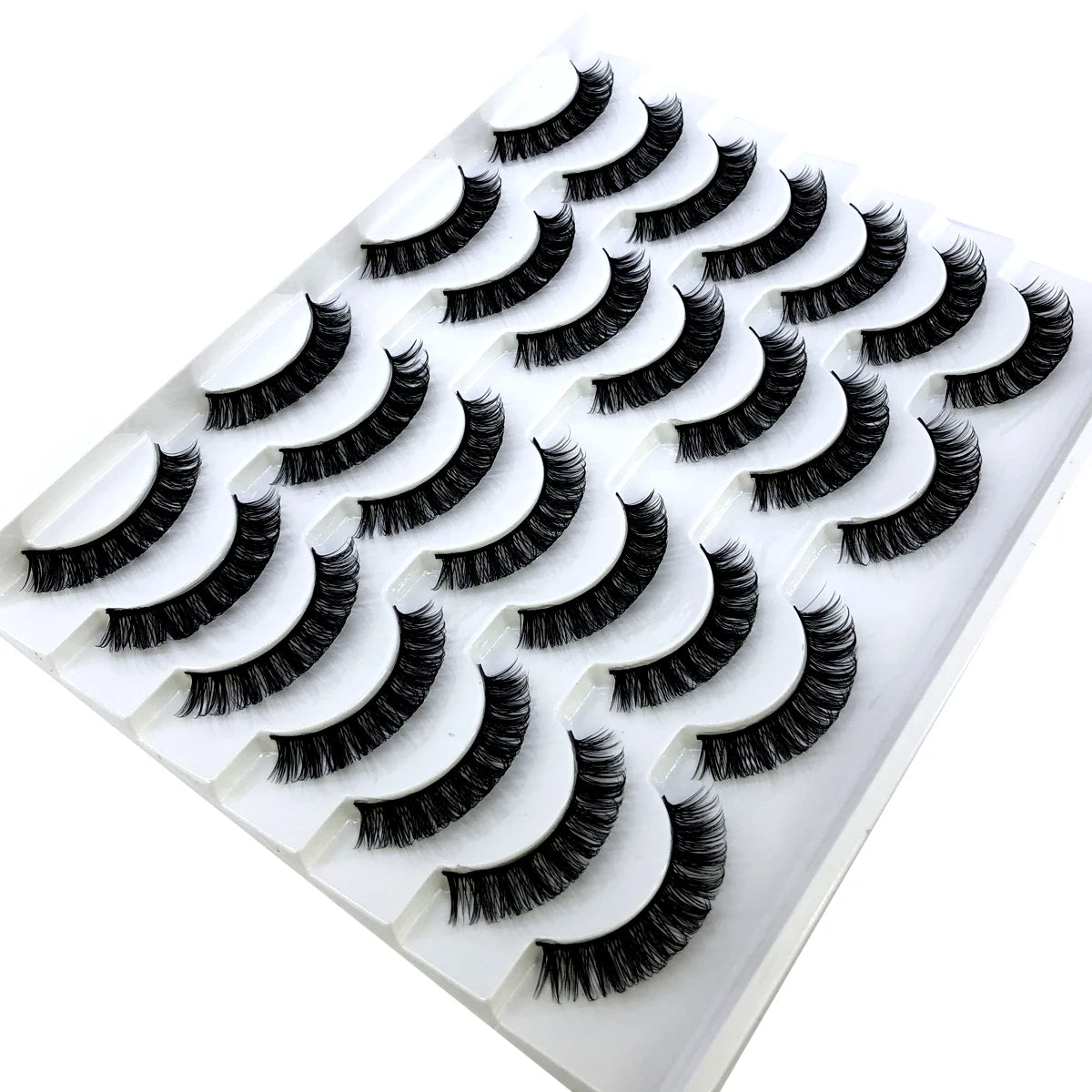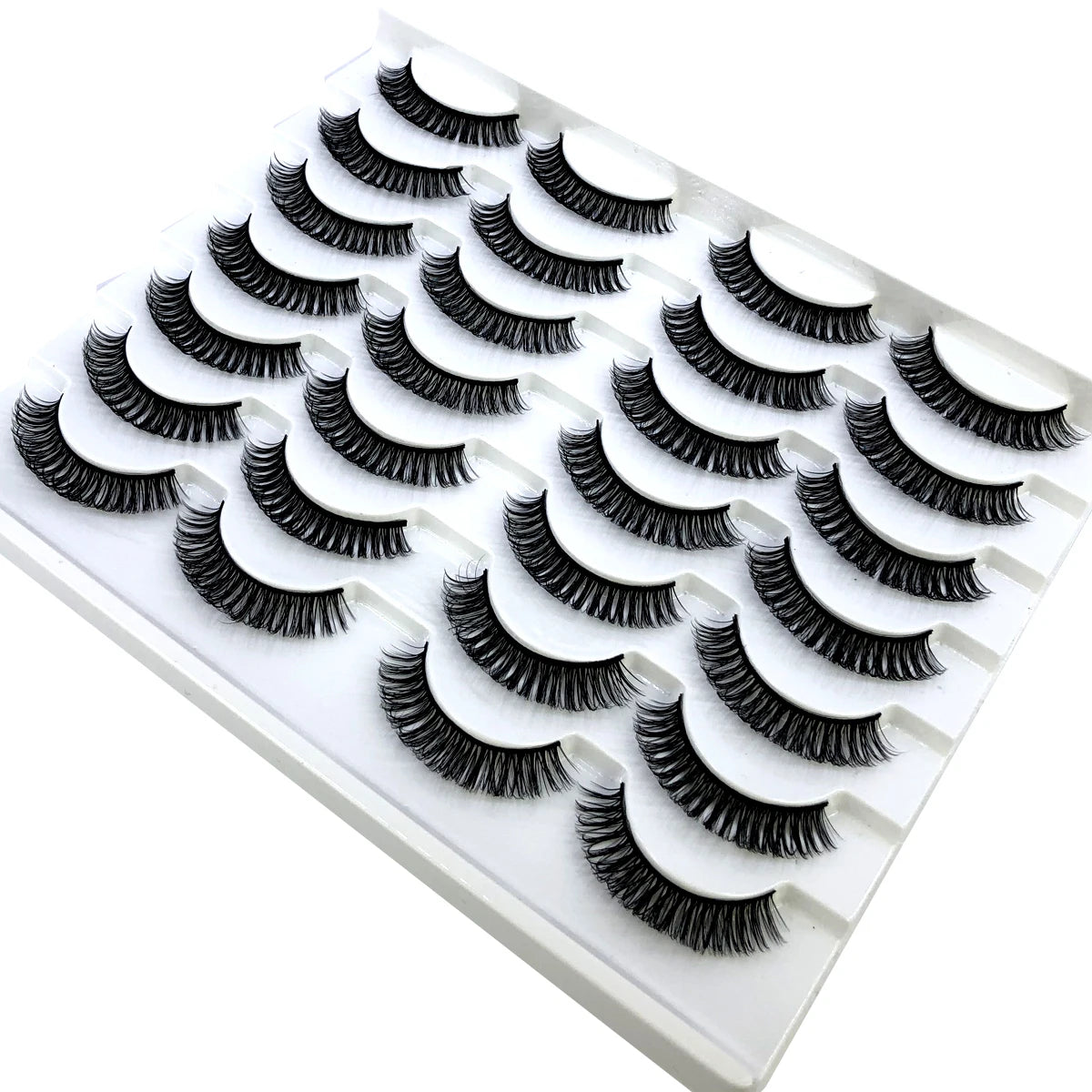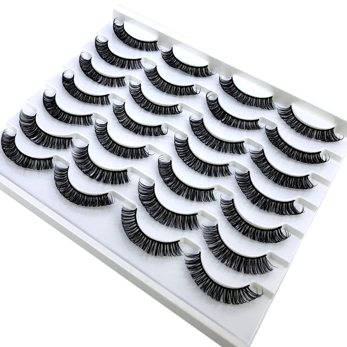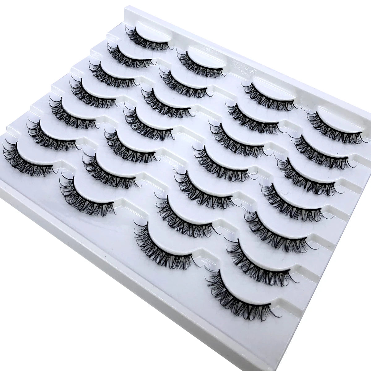 Discover the allure of these exquisite handcrafted false eyelashes, perfect for both everyday elegance and special occasions. Designed with a chic winged style, these lashes are crafted from premium, lightweight materials for all-day comfort. The innovative soft plastic cotton band ensures easy application and a secure fit, enhancing your eyes with timeless elegance. Each set includes 14 pairs, offering captivating lengths from 1 cm to 1.5 cm that beautifully balance volume and sophistication.