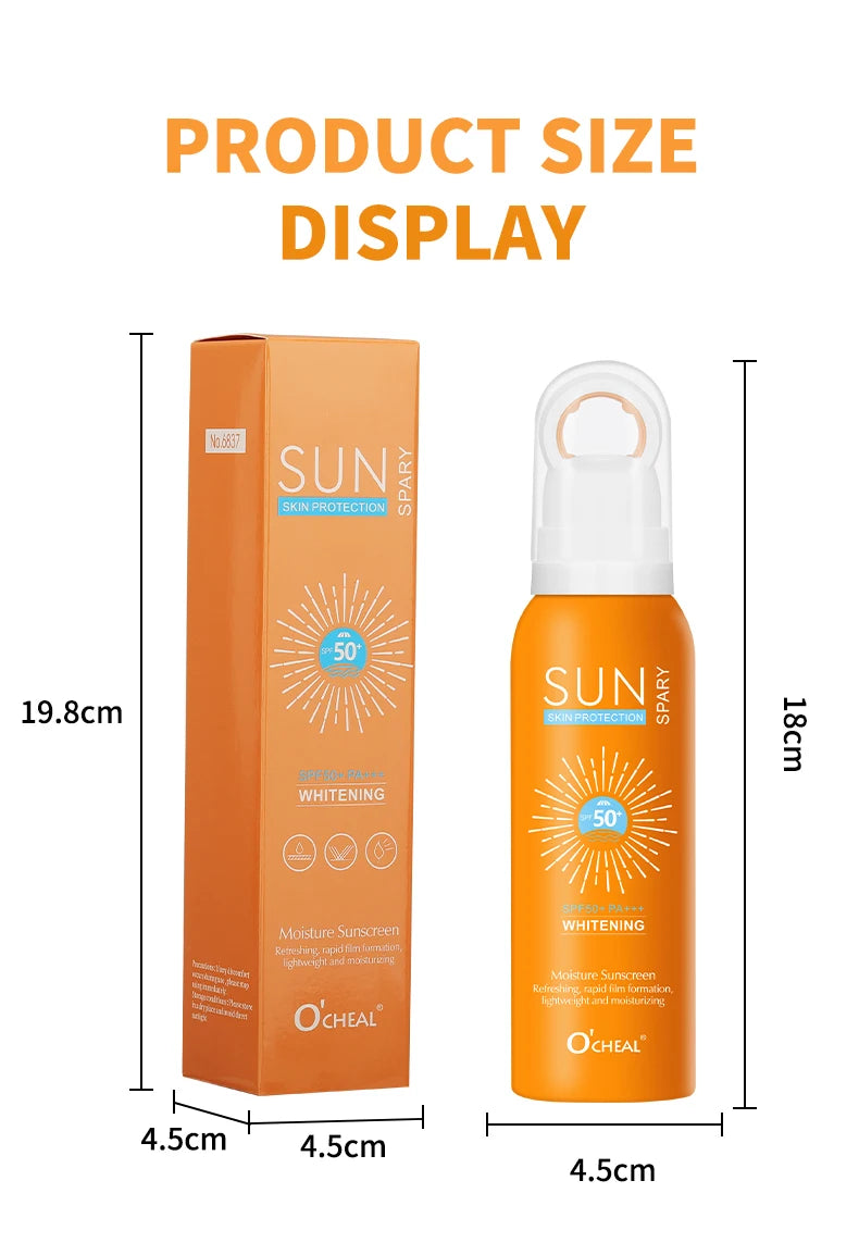 Discover the perfect addition to your skincare routine with this 150ml Sunscreen Spray, offering outstanding SPF 50+ protection. This lightweight and hydrating formula not only shields your skin from harmful UV rays but also provides anti-aging, anti-wrinkle, and brightening benefits. Designed for full coverage on your face, neck, and body, it keeps your skin nourished and protected. Elegantly packaged in a stylish gift box, it's ideal for enhancing your skincare collection or as a thoughtful gift.