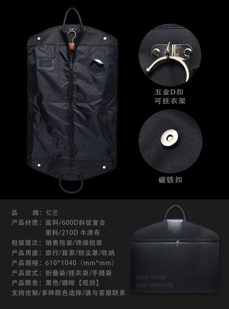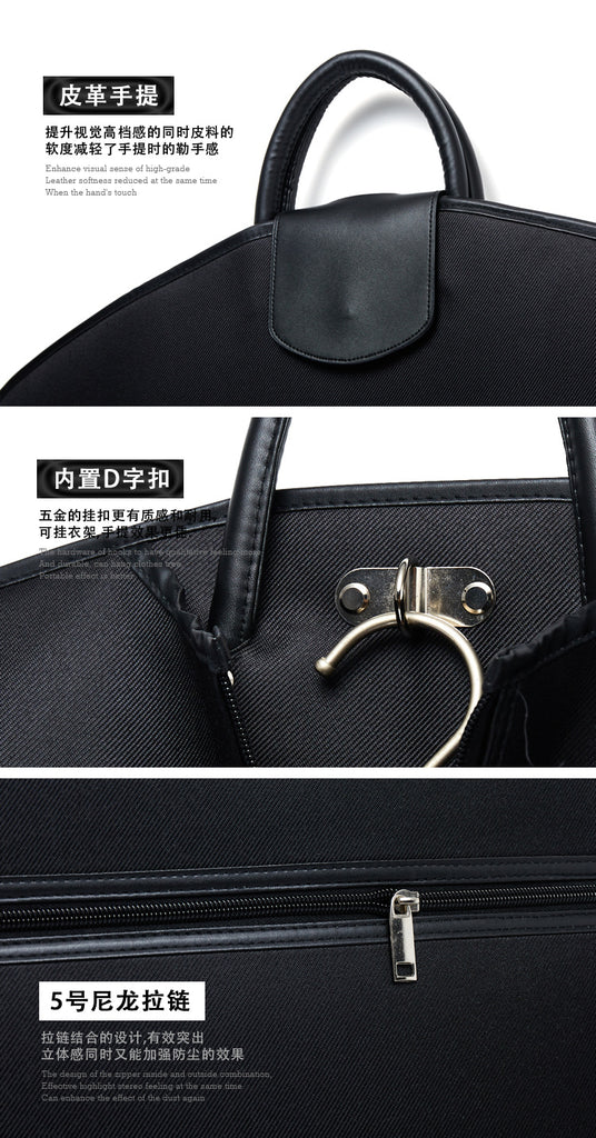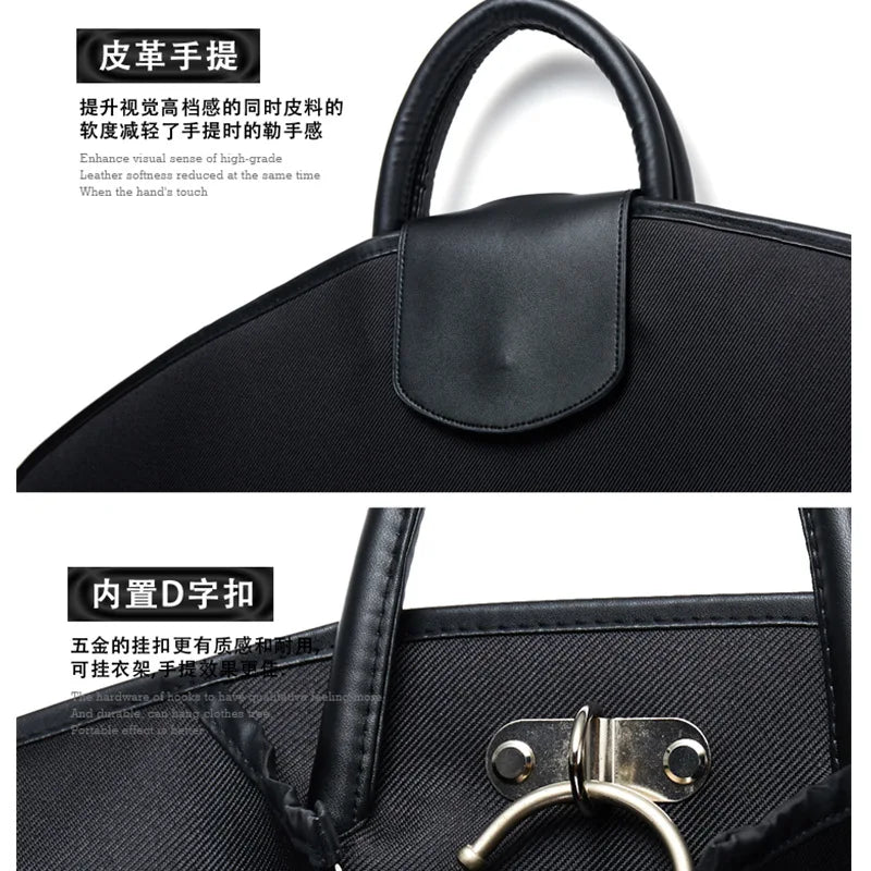 Black Oxford Cloth Garment Bag - Anti-Wrinkle Suit Protector & Handbag Storage for Men