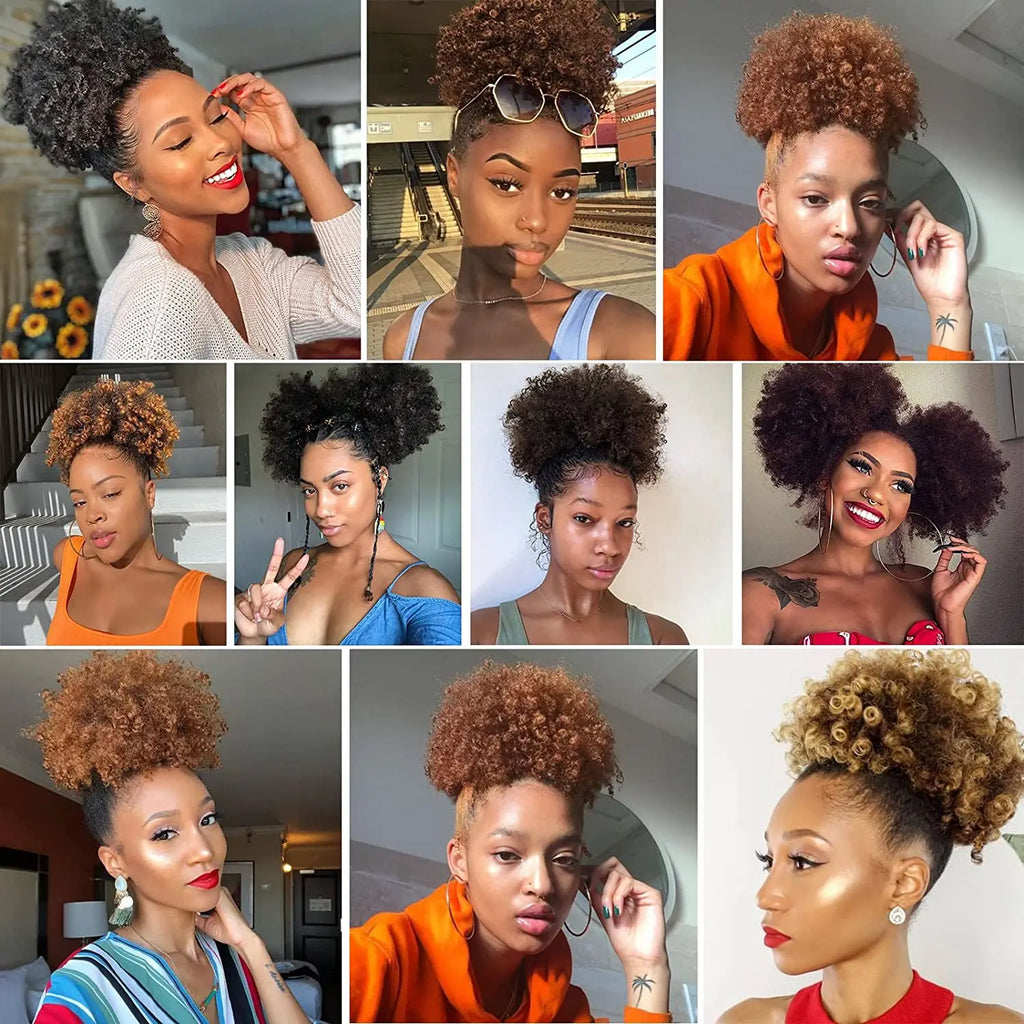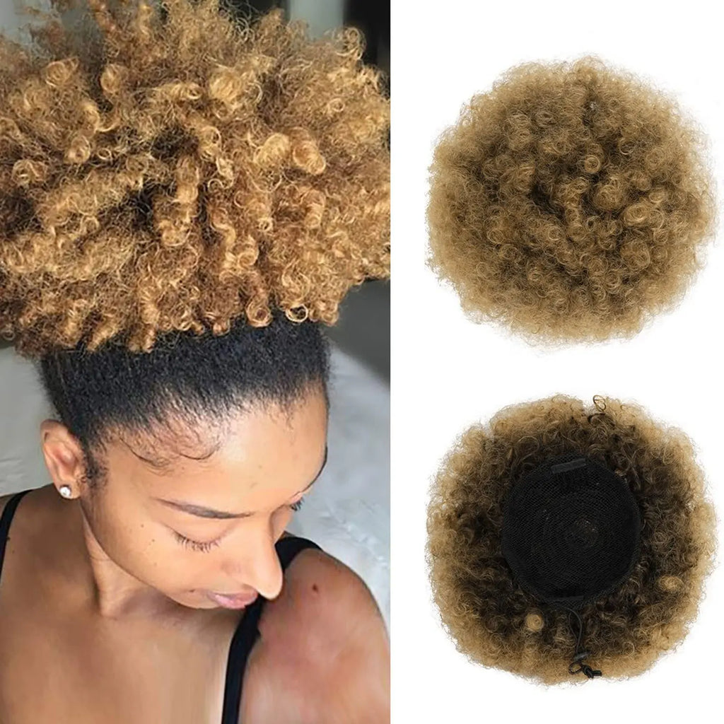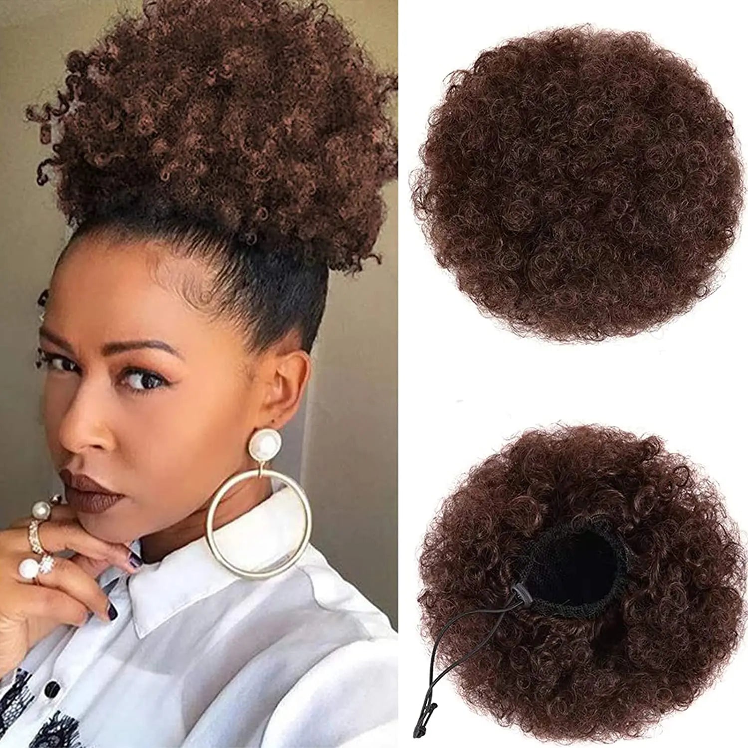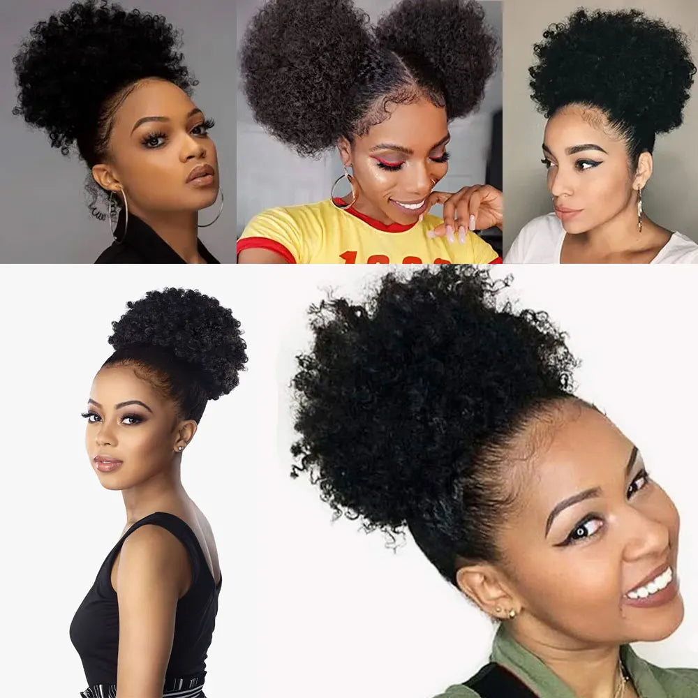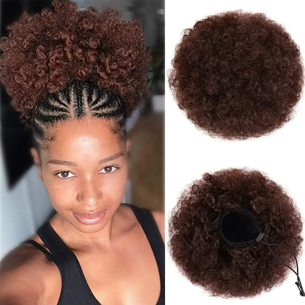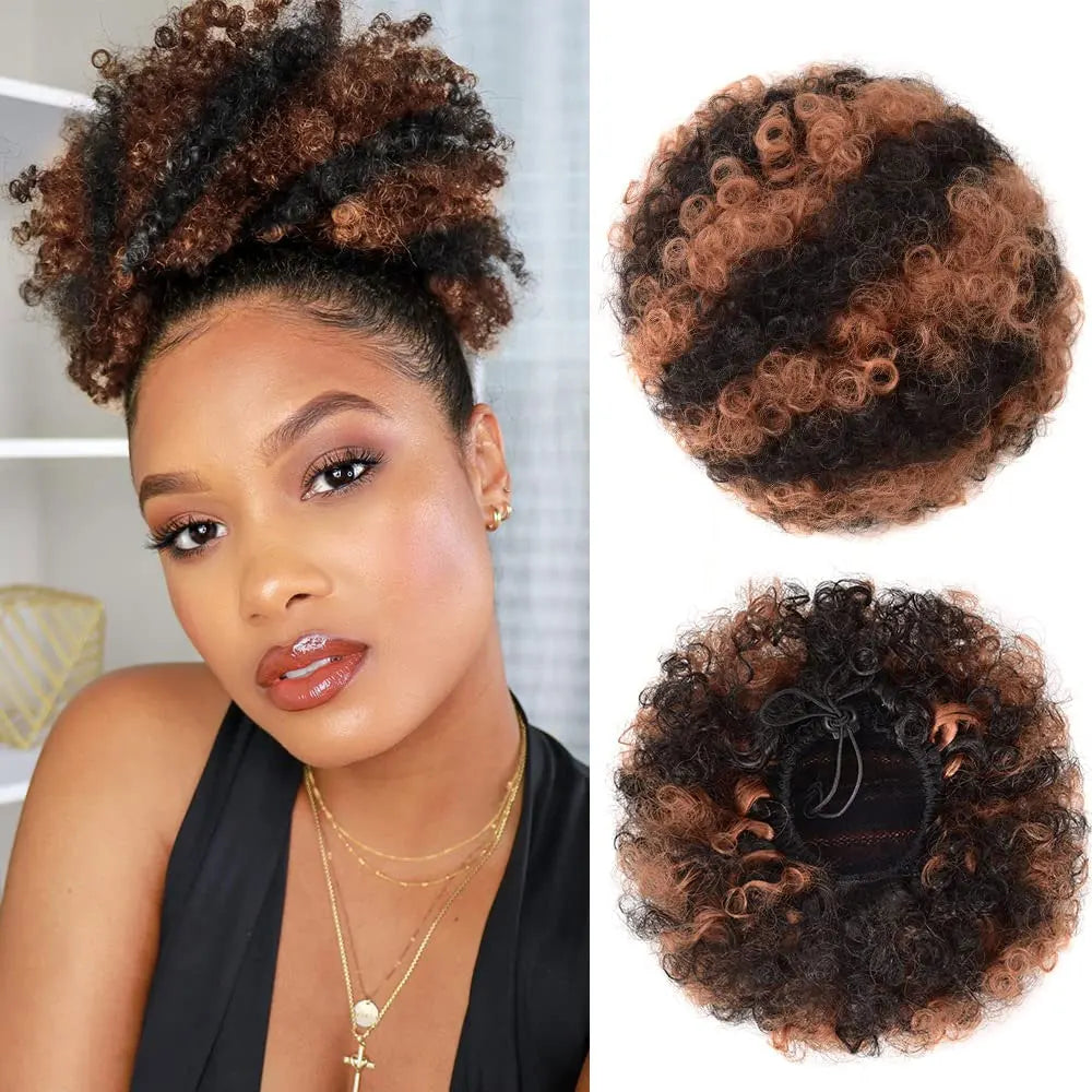 Afro Puff Drawstring Ponytail Extension for Black Women - Kinky Curly Clip-On Bun