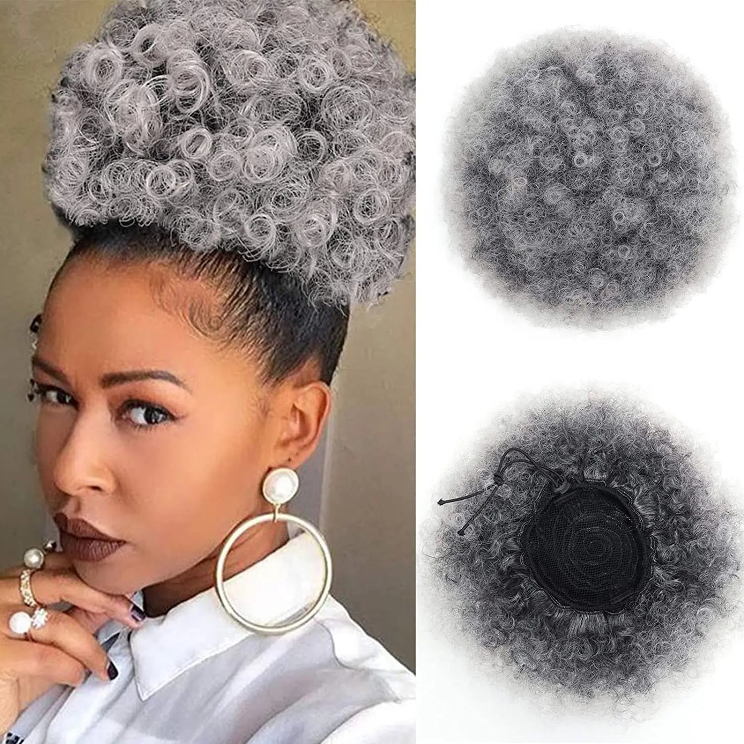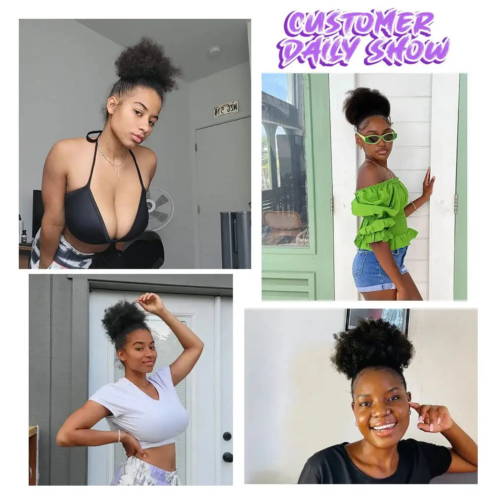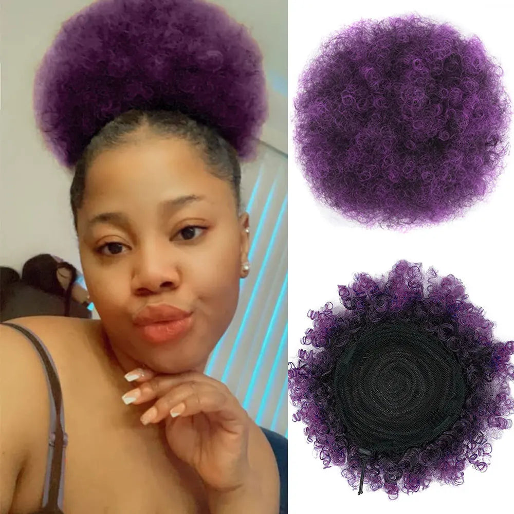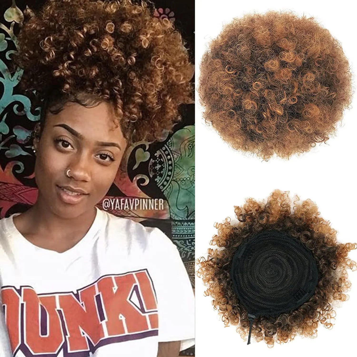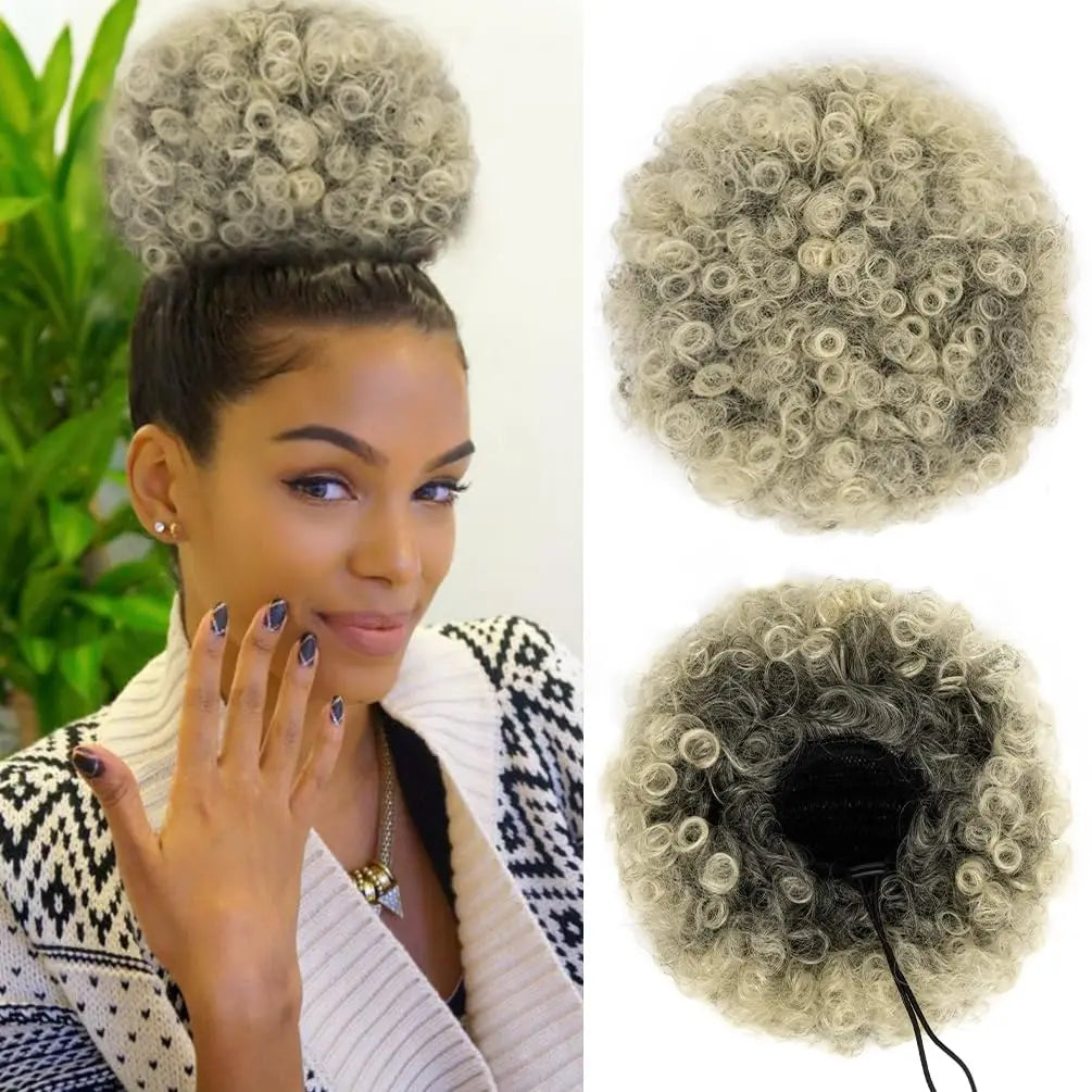 Afro Puff Drawstring Ponytail Extension for Black Women - Kinky Curly Clip-On Bun