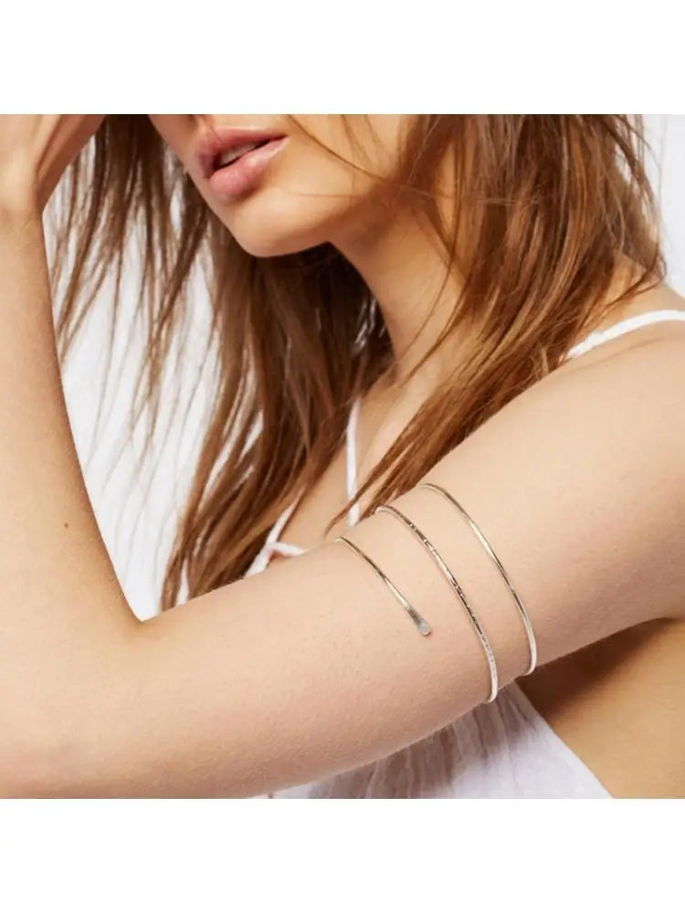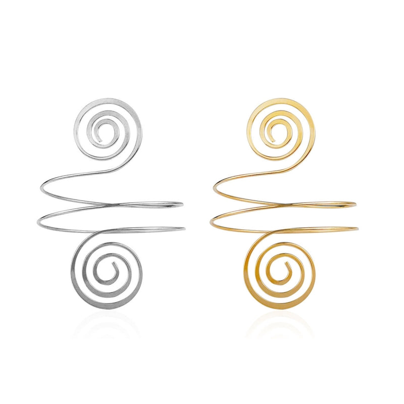 Elevate your style with the trendy Upper Arm Bracelet Metal Coil Swirl Armband Cuff. Designed for both comfort and fashion, this simple yet chic armlet is perfect for any outfit. Crafted from durable and lightweight aluminium alloy, it features a smooth and comfortable fit, ensuring long-lasting wear without rusting or deforming.