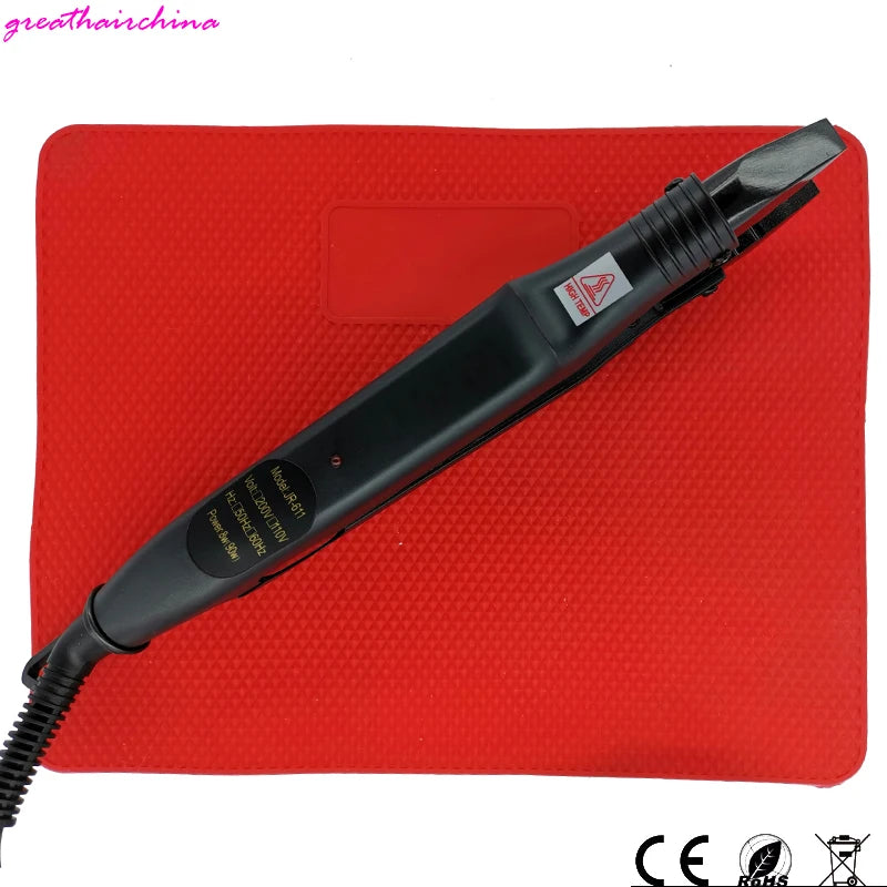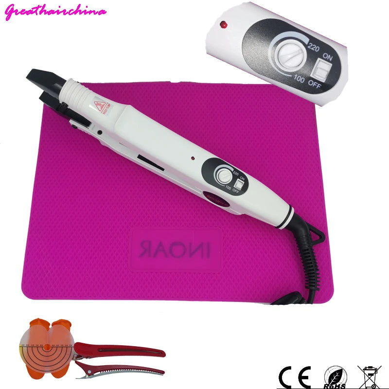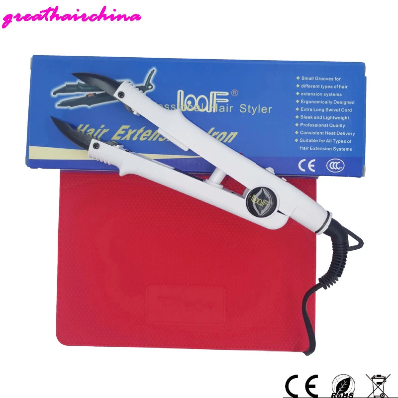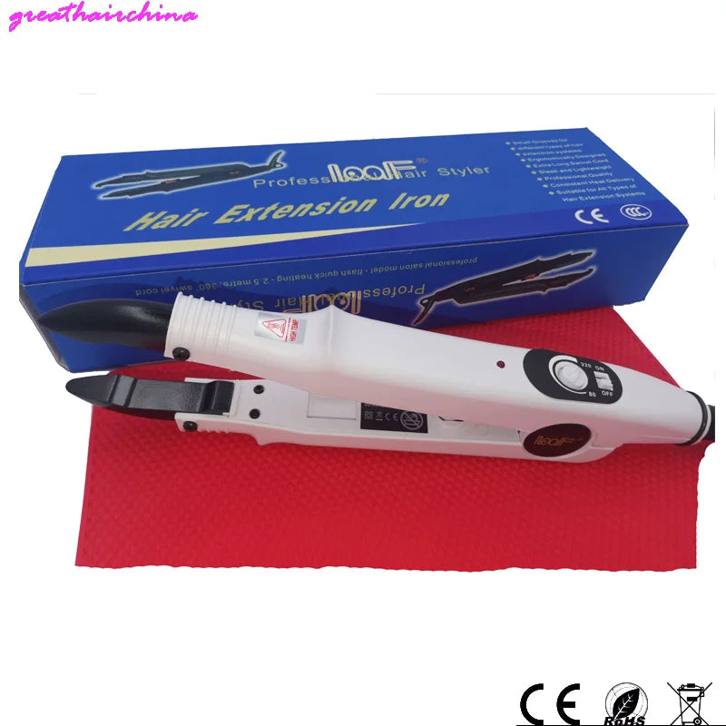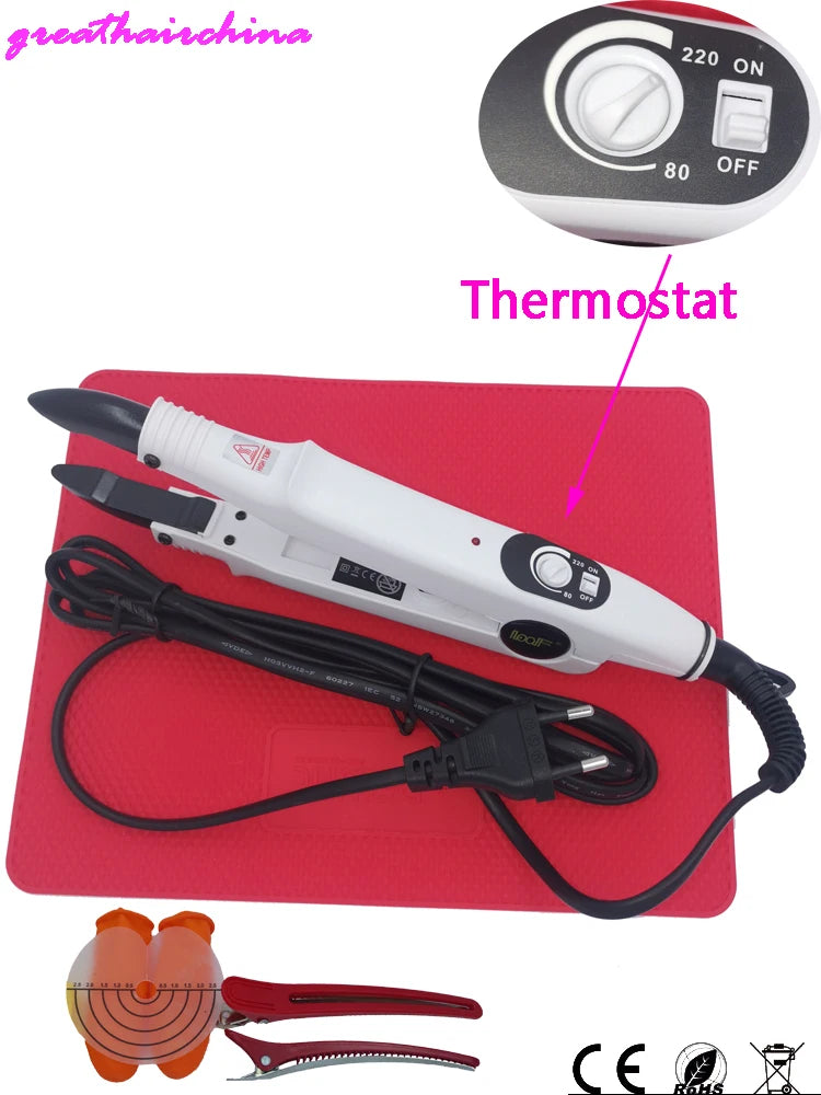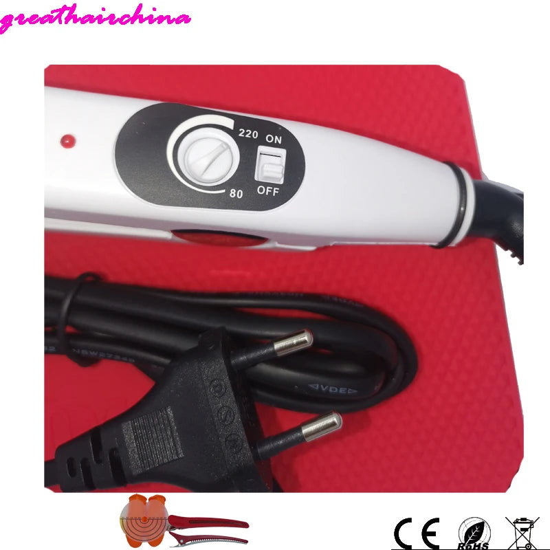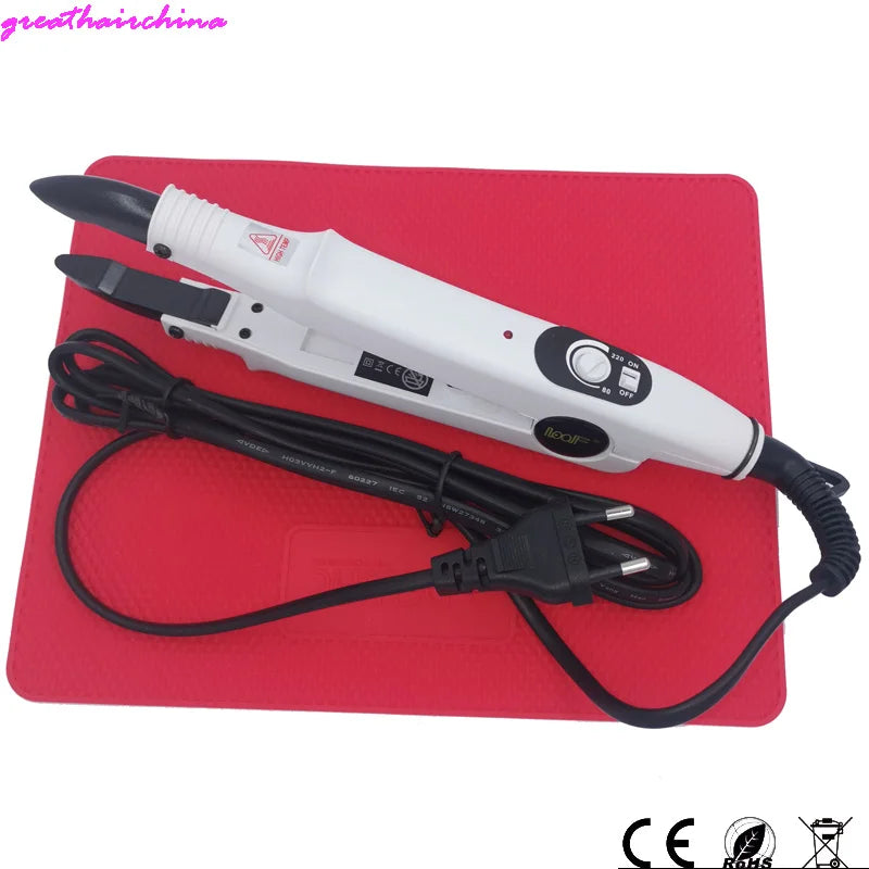 Adjustable Temperature Hair Extension Fusion Iron - White Keratin Bonding Tool with Protective Silicone Pad