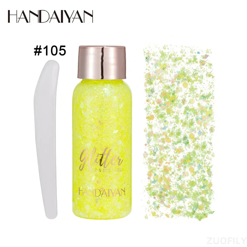 Elevate your look with our luxurious Body Glitter Cream, designed to infuse a touch of sparkle into any moment. Perfect for festive events, parties, or even to add a bit of shine to your everyday style, this cream provides a luminous, long-lasting shimmer that ensures you make a statement. Easily adaptable, it can be applied to your face, body, or hair with minimal effort. Removal is hassle-free, allowing you to effortlessly transition back to your natural appearance. A precision spoon is included for flawless application, giving you the perfect glow each time.