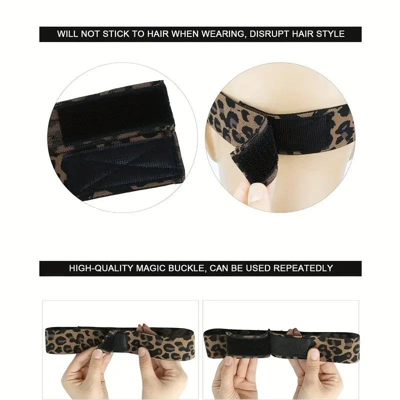 Elastic Wig Band Set: Silver, Leopard, Black Lace for Laying Edges & Melting Lace, Adjustable 3 Pack