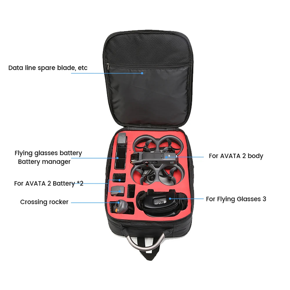 DJI Avata/Avata 2 Drone Backpack – Large Capacity Travel Case for Flight Glasses & Accessories