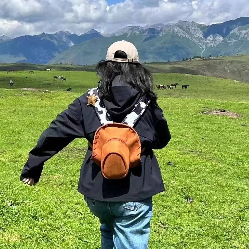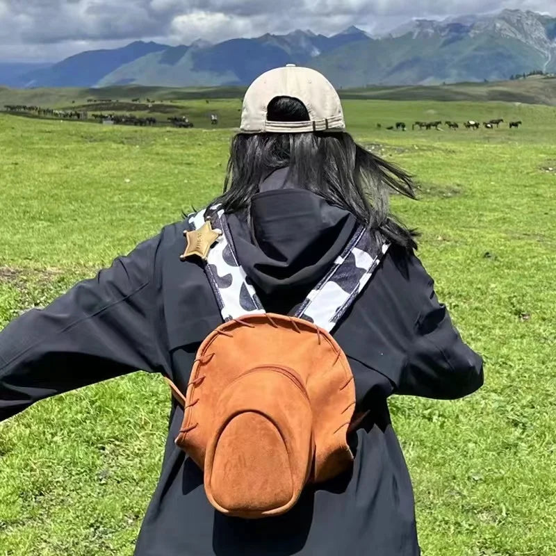 Introducing the versatile and stylish Comic Cosplay Woody Cute Backpack, perfect for women and girls who enjoy a touch of fun in their accessories. This charming shoulder bag, designed in a playful cartoon cowboy hat style, is an ideal choice for leisure outings and as a school bag for children. With a capacity below 20 liters, it offers enough space for essentials while maintaining a sleek profile. The backpack features a softback design with a convenient arcuate shoulder strap for comfortable carrying. Crafted from high-quality faux suede, it ensures durability and a luxurious feel. The backpack includes a soft handle and a secure zipper closure, making it an excellent gift choice for anyone who appreciates casual, preppy, hip-hop, or fashion styles.