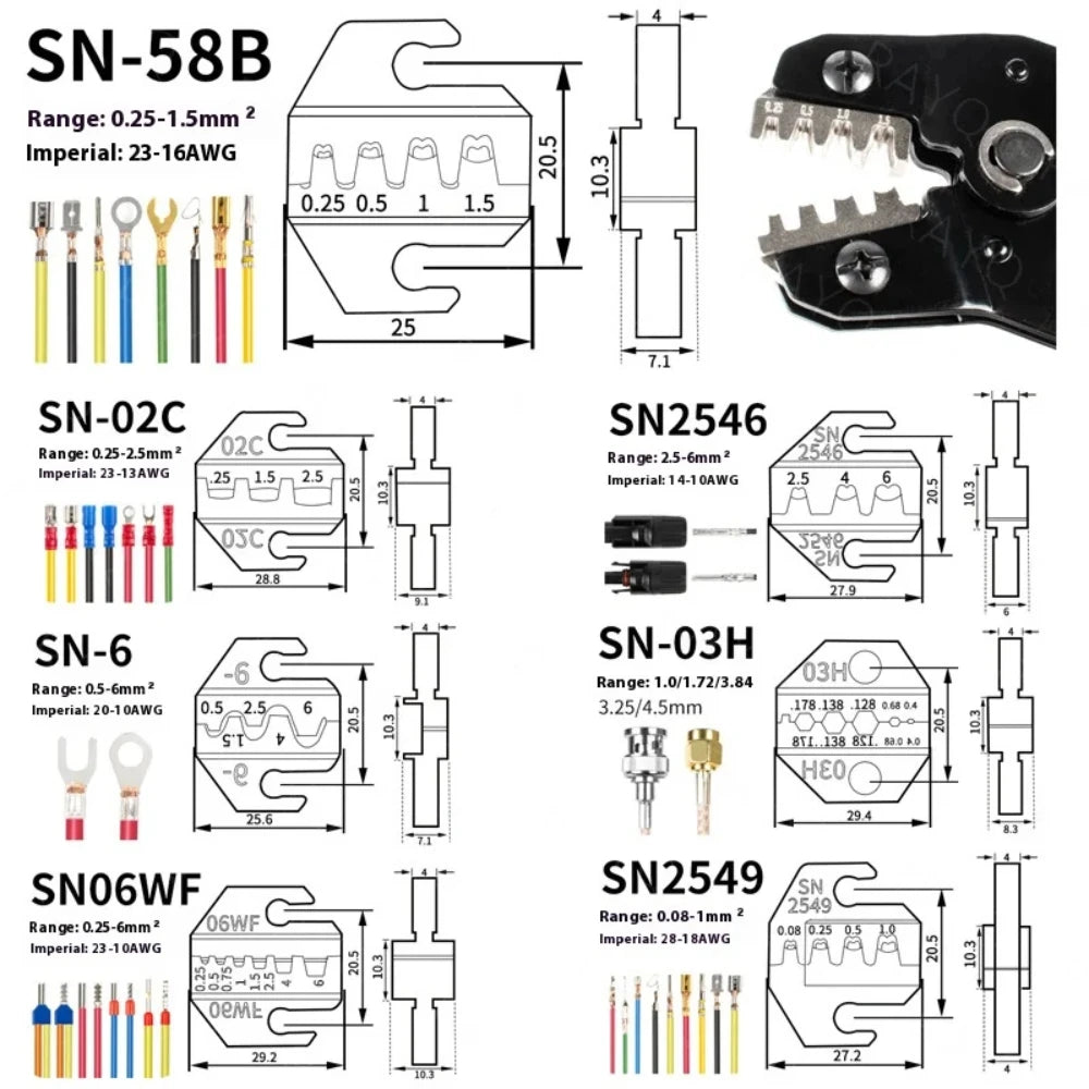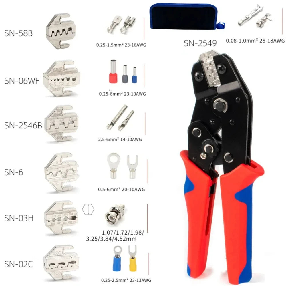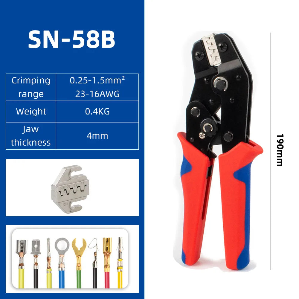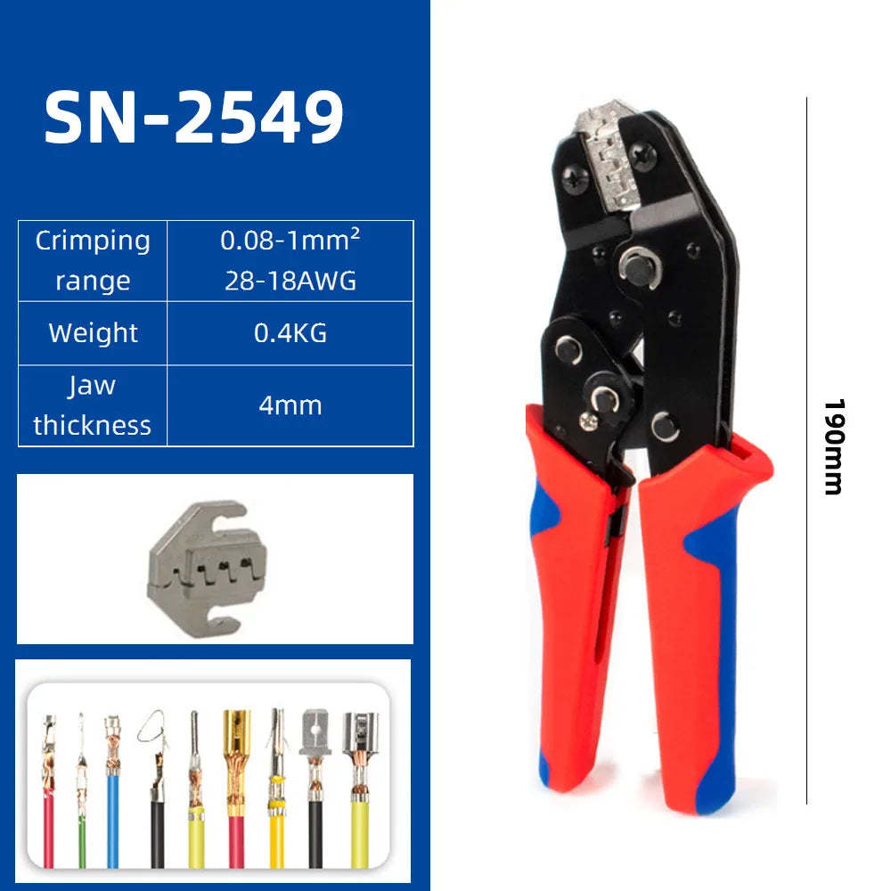 Crimping Tool for Dupont JST Molex Terminals, Insulated Ferrules, Butt, Solar & Coax Connectors SN-58B 2549 2546B