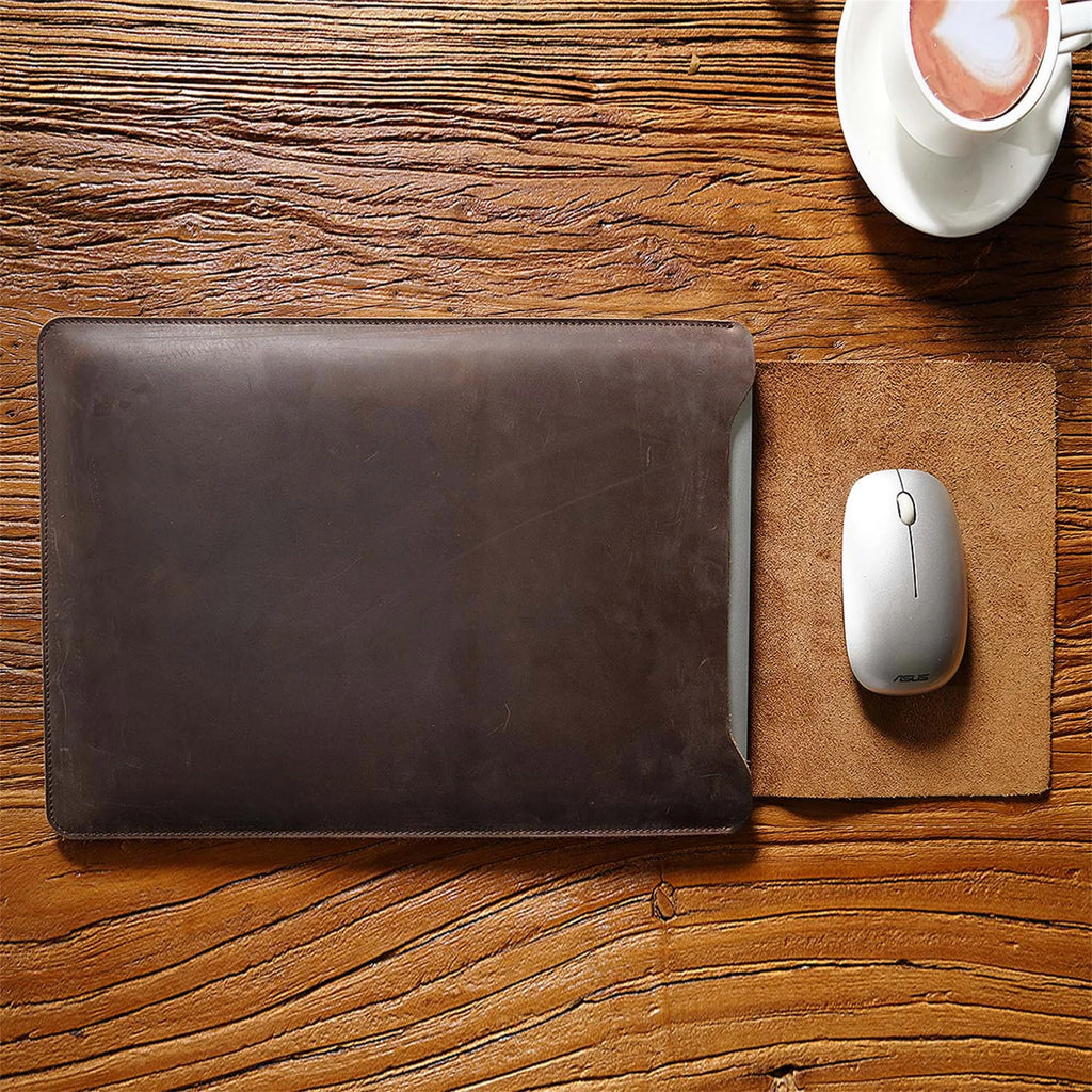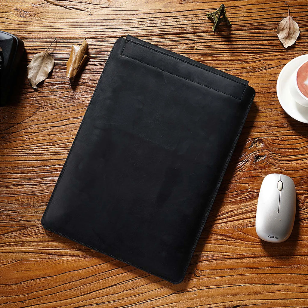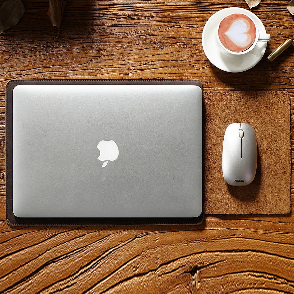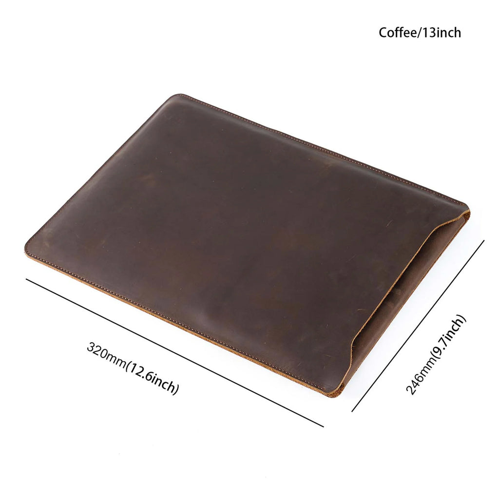 Cowhide Quilted Leather Laptop Sleeve Case for 12", 13", 14" MacBook Pro