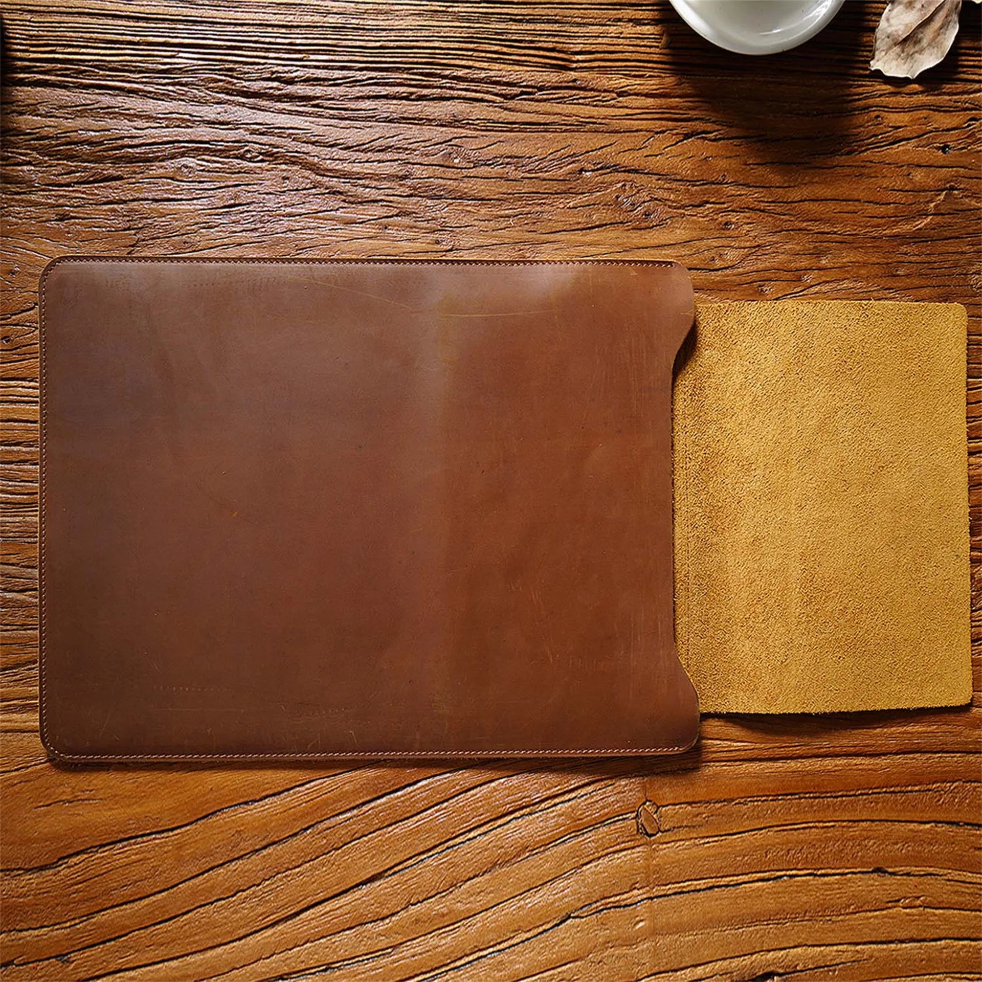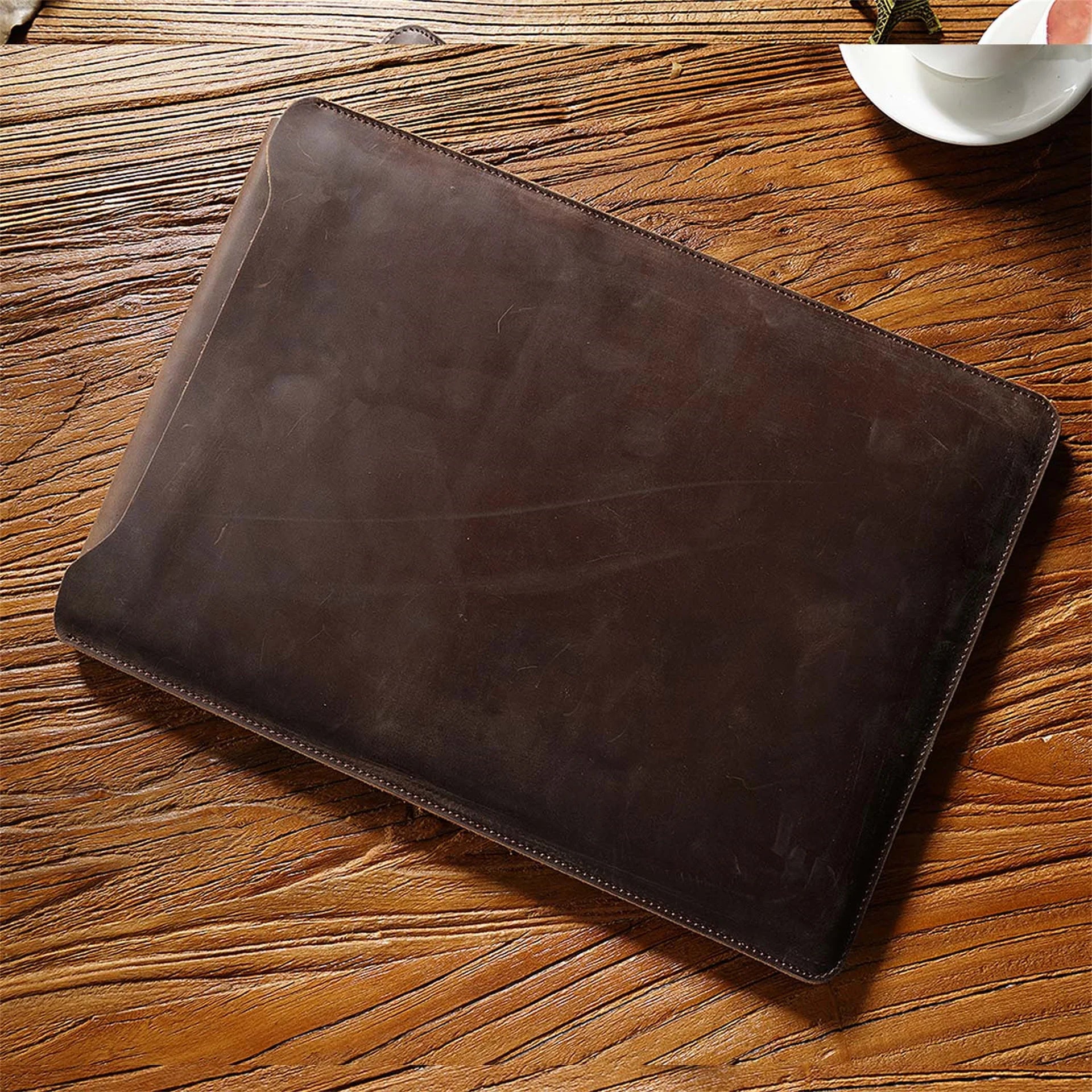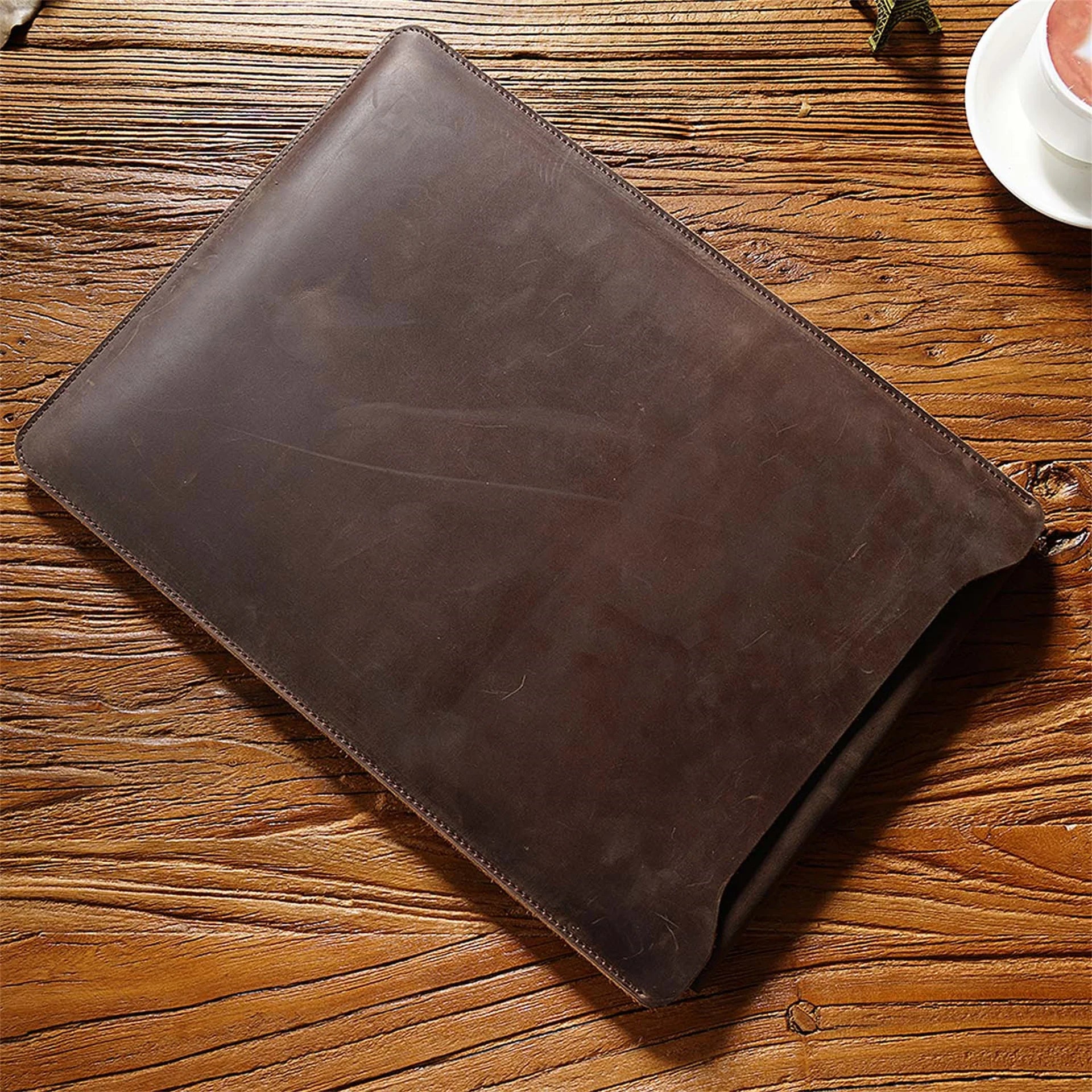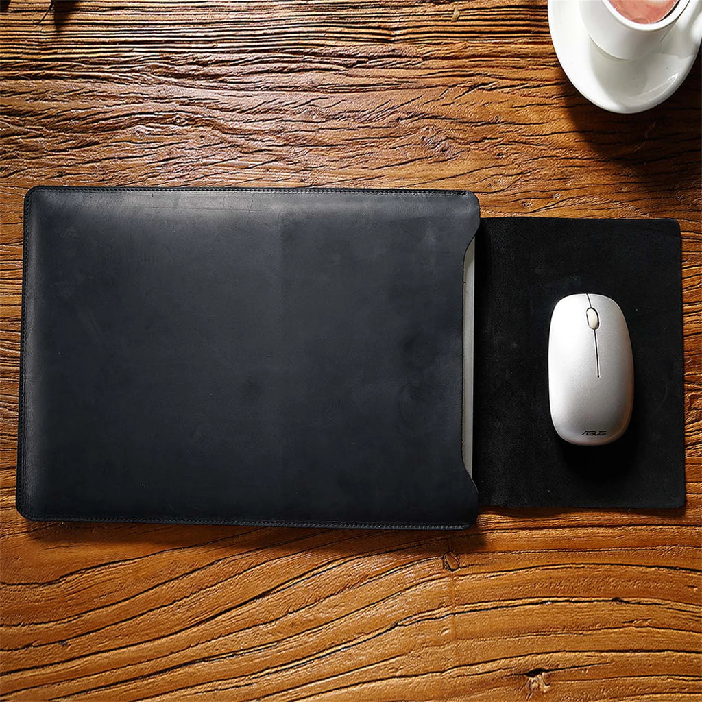 Cowhide Quilted Leather Laptop Sleeve Case for 12", 13", 14" MacBook Pro