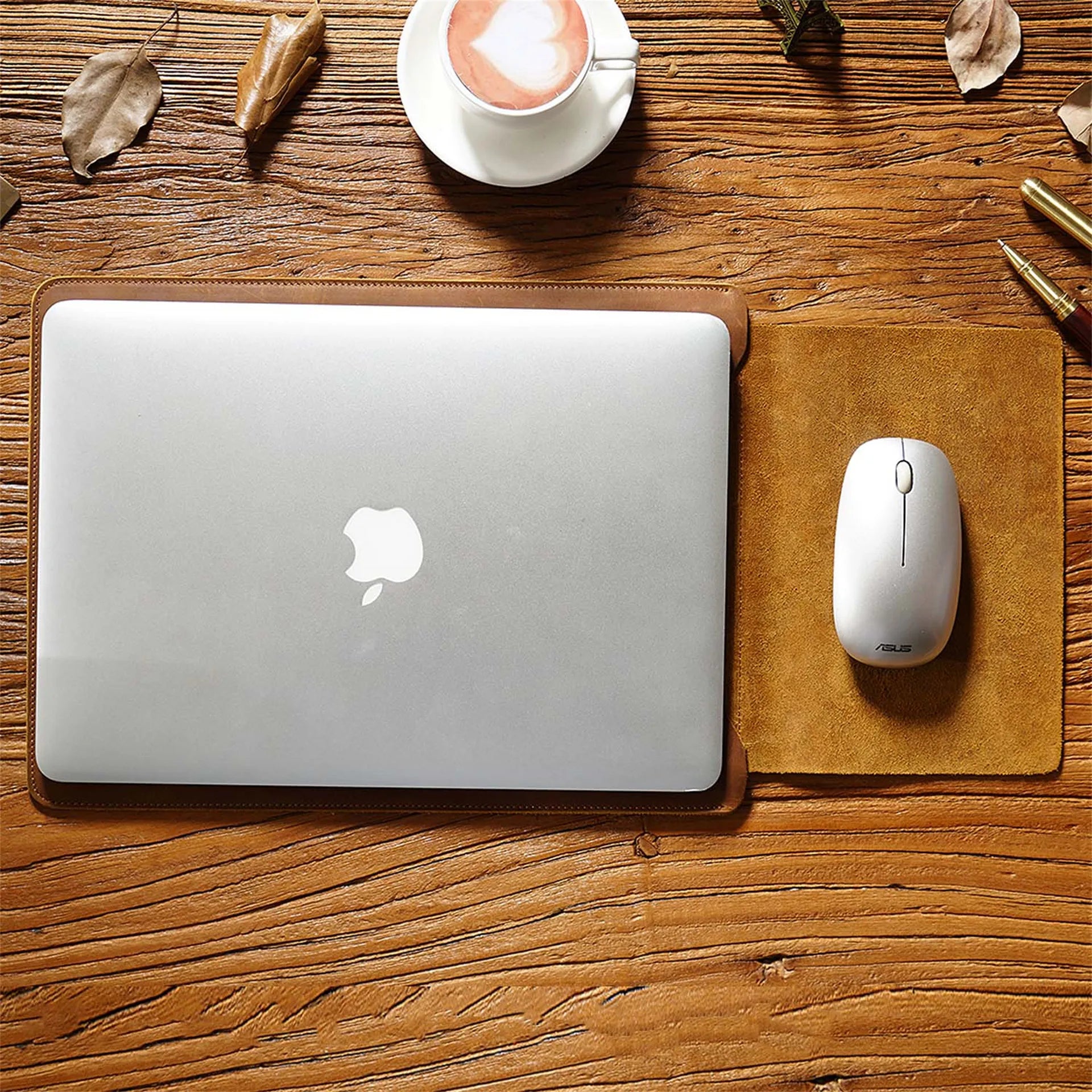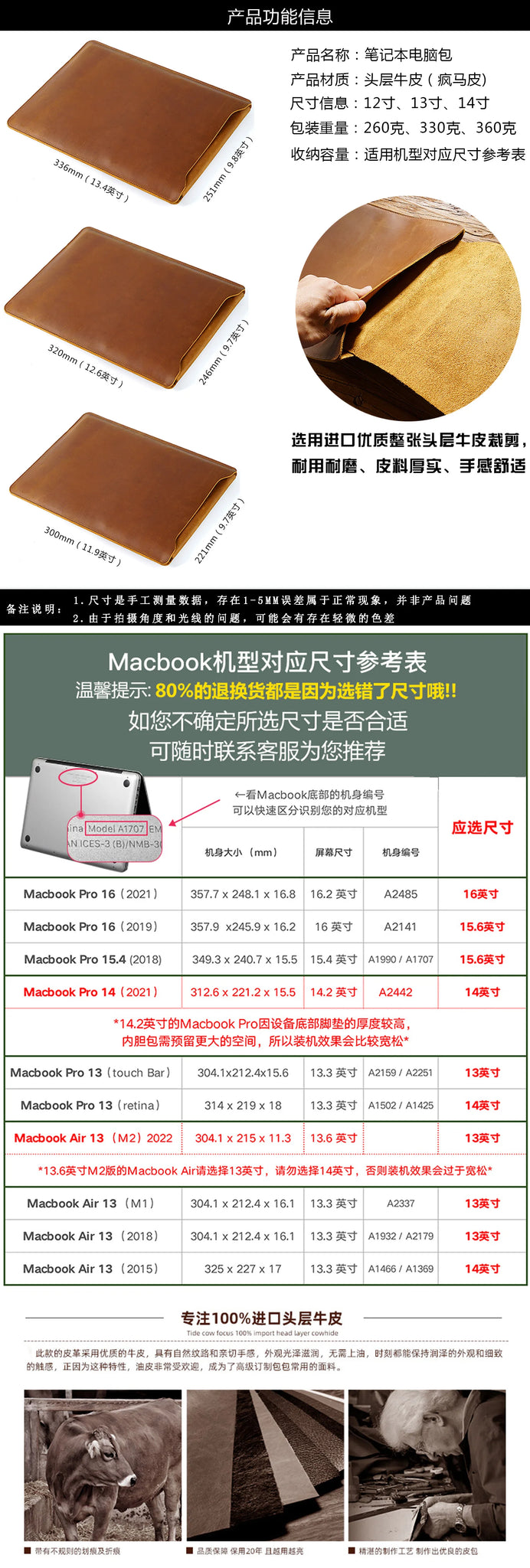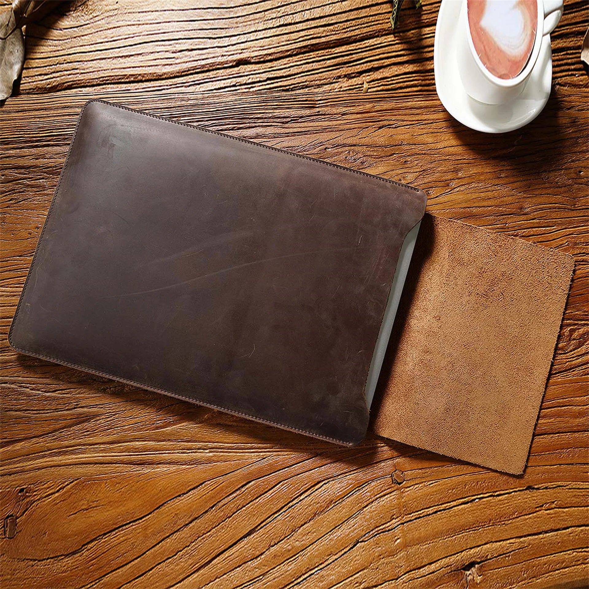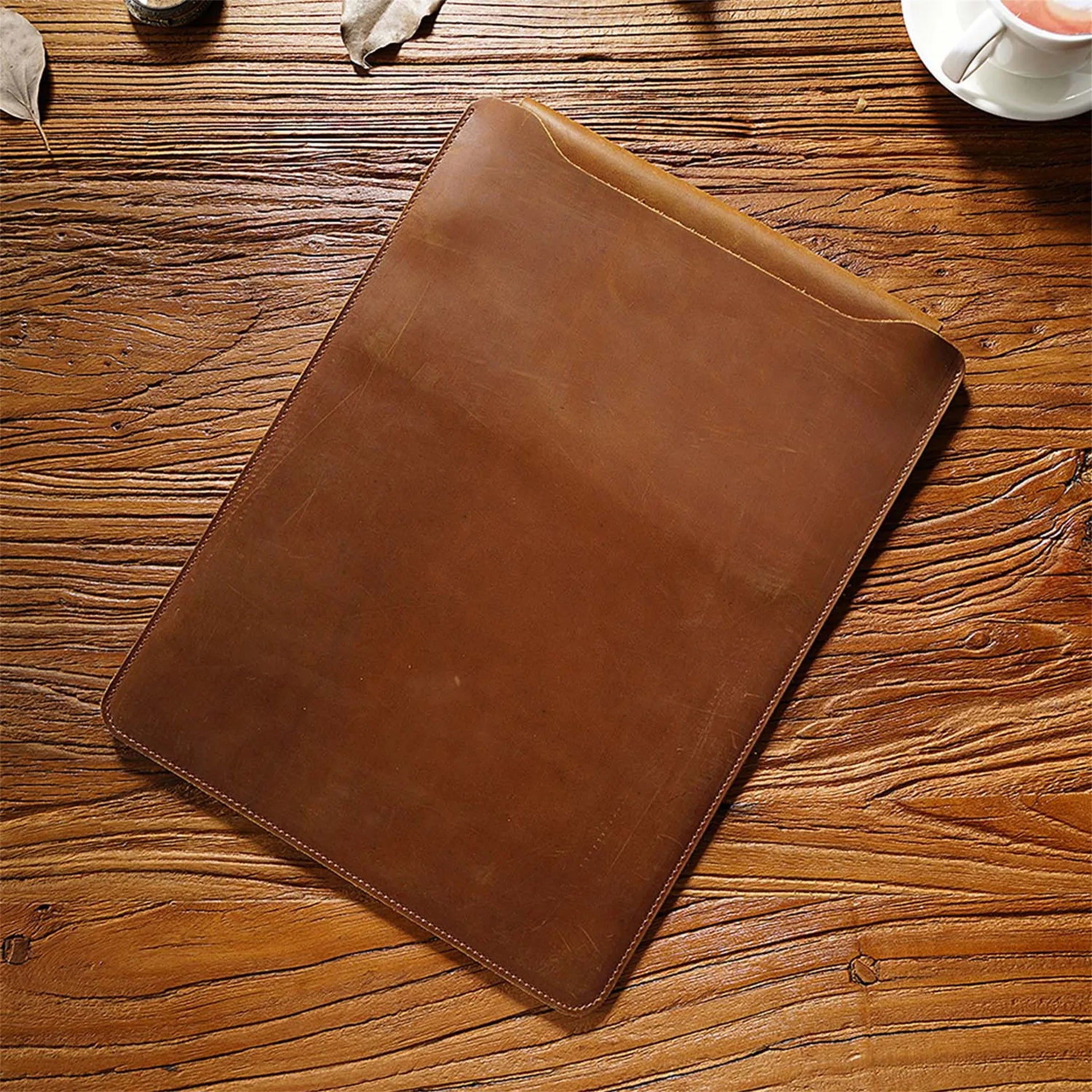 Cowhide Quilted Leather Laptop Sleeve Case for 12", 13", 14" MacBook Pro