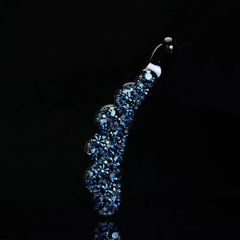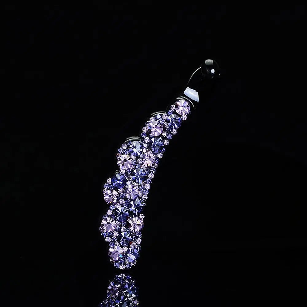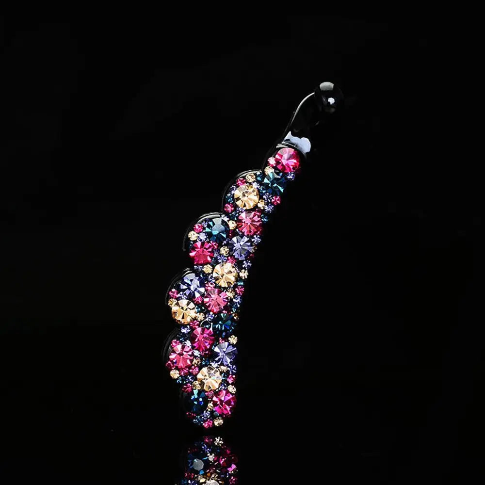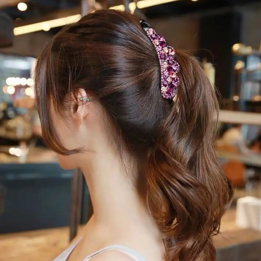Enhance your hairstyle with this elegant banana clip, an ideal accessory for both casual outings and special occasions. Made from durable plastic and adorned with sparkling diamond accents, it adds a glamorous touch to any ensemble. Available in a beautiful array of colors—gold, multicolor, blue, purple, blue & grey, and champagne & purple—this clip seamlessly complements your wardrobe. Choose between two sizes, small (8cm) and large (10.5cm), to suit different hair types and styles. This versatile and chic accessory is a stylish and functional addition to your hair collection.