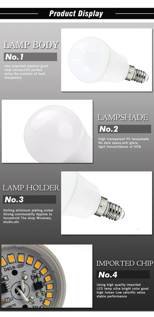 E14 LED Bulbs AC220-240V 3W 6W 9W 12W SMD2835 Cold/Warm White for Living Room Lighting