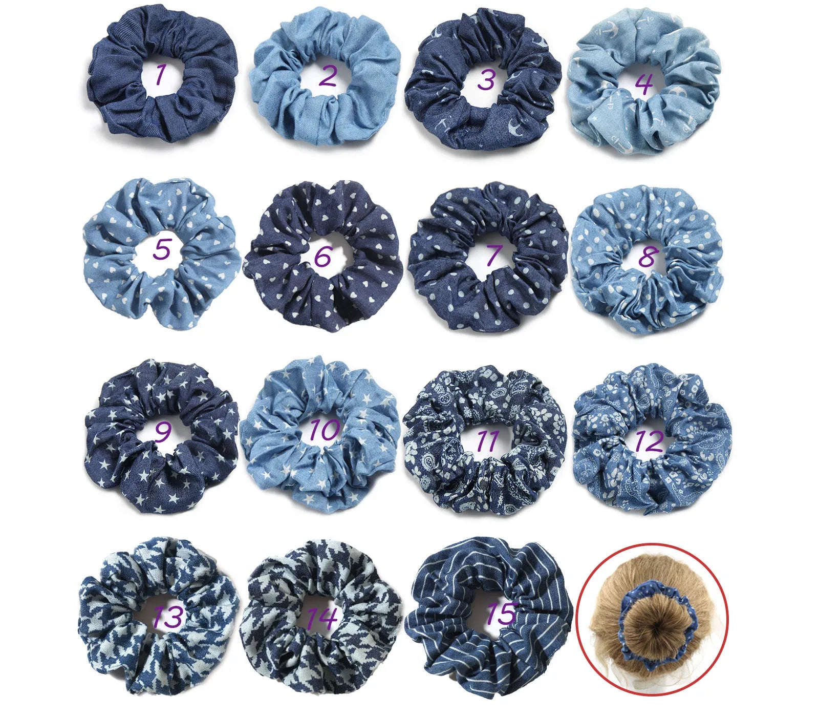 Elastic Polka Dot Paisley Hair Scrunchies & Ties – Star, Anchor, Checkered Designs