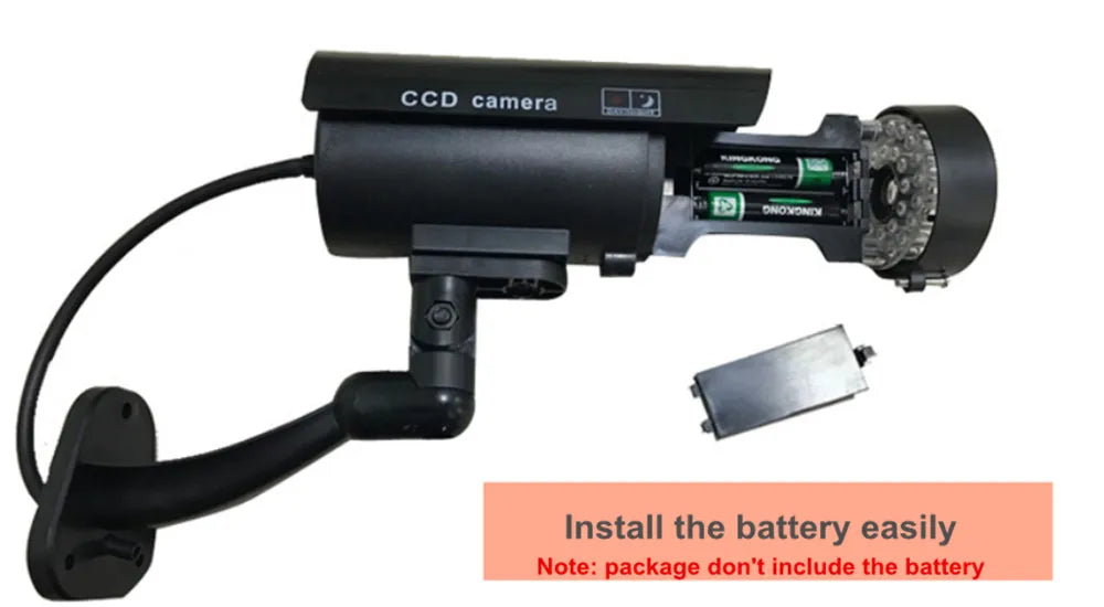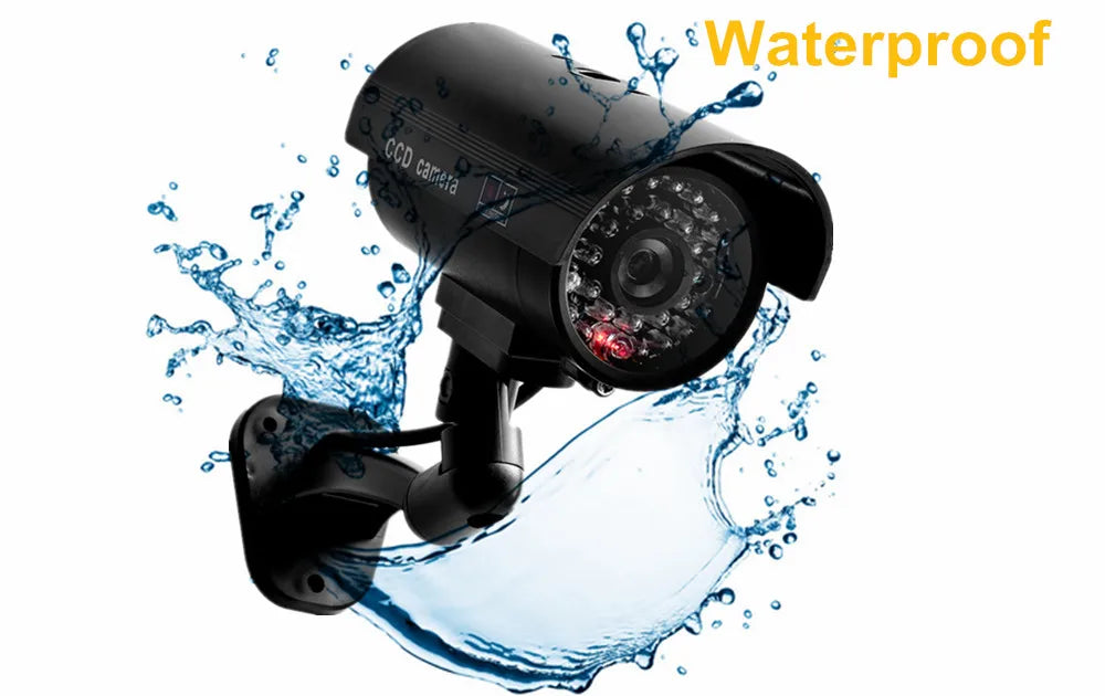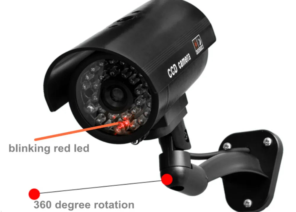 Dummy CCTV Security Camera, Waterproof Fake Cam with IR LED, Flashing Red Light, Home Surveillance System