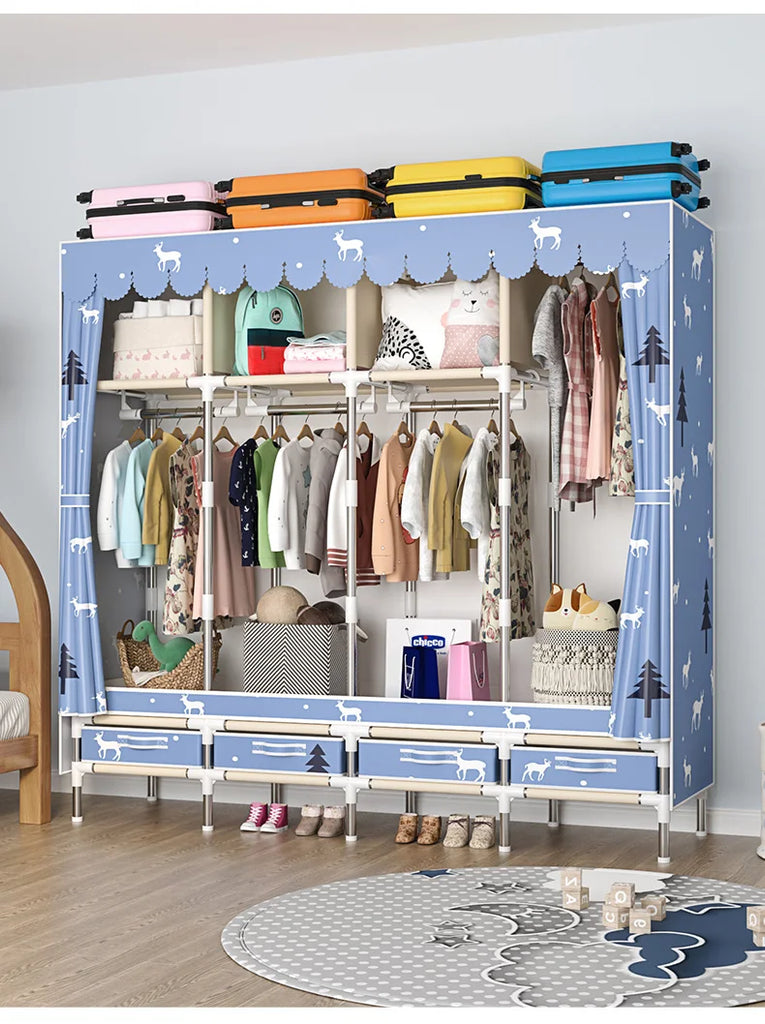 Introducing a sleek addition to your home furniture collection, our modern wardrobe is designed for both style and functionality. This minimalist piece perfectly complements any bedroom decor with its contemporary aesthetic. Crafted with high-quality metal and finished with elegant cloth materials, this wardrobe promises durability while keeping a sophisticated appearance.