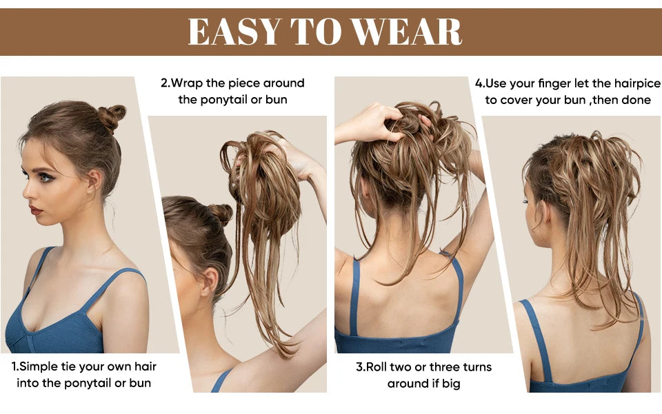 Elastic Messy Bun Hairpiece Curly Scrunchie Black Blonde Brown Updo Chignon Donut Synthetic Hair Extensions