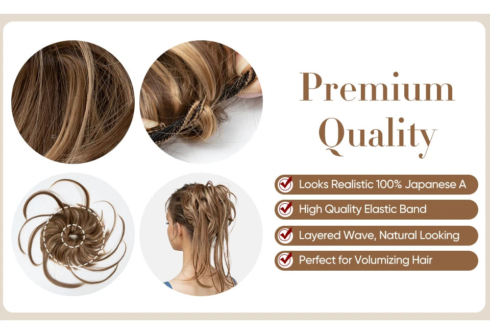Introducing our premium Rubber Band Curly Chignon, crafted from high-temperature fiber for a natural and stylish look. This pure color accessory is ideal for effortlessly enhancing your hairstyle with a touch of elegance. Despite its intricate appearance, it offers an easy choice for everyday wear or special occasions. Please note that this chignon is not suitable for perming.
