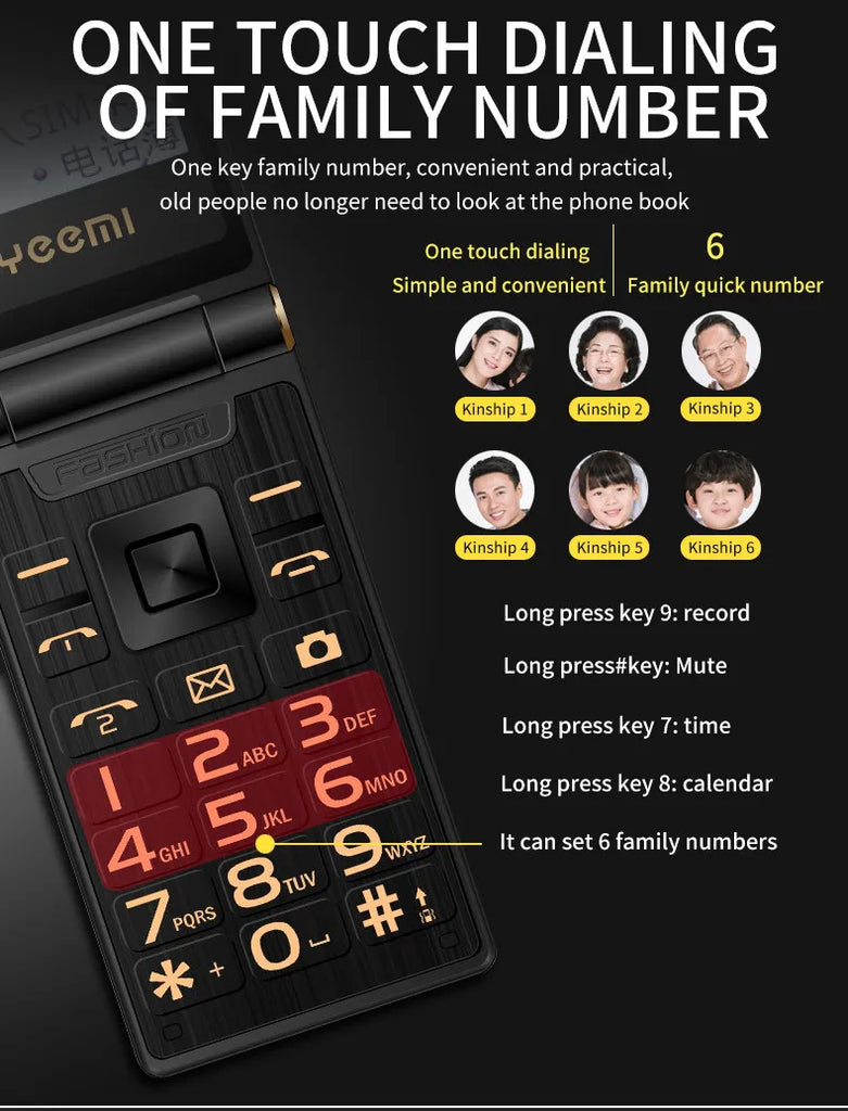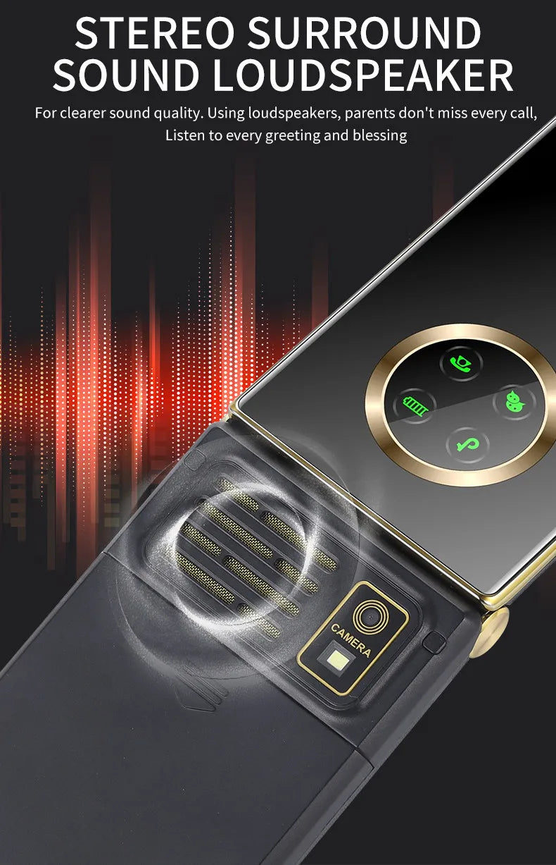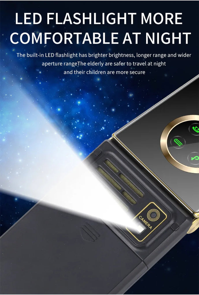 Elderly Flip Phone Large Button SOS Speed Dial Torch Dual SIM Long Standby Blacklist Feature
