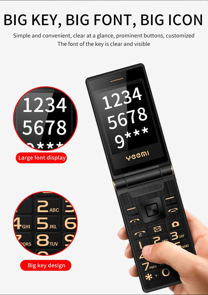 Explore the reliability of this robust flip phone, designed with practicality in mind. Ideal for those seeking essential functions, this phone features a clear 2.8-inch display and a durable build measuring 111*58.5*18.2mm. With a powerful 5900mAh detachable battery, enjoy extended use without frequent recharging.