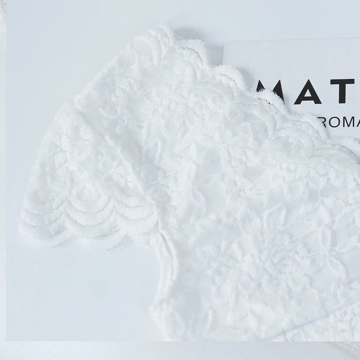 Elegant Women's White Lace Bodysuit V-Neck Jumpsuit Thong Slim Fit Shapewear Top Summer Sexy Fashion