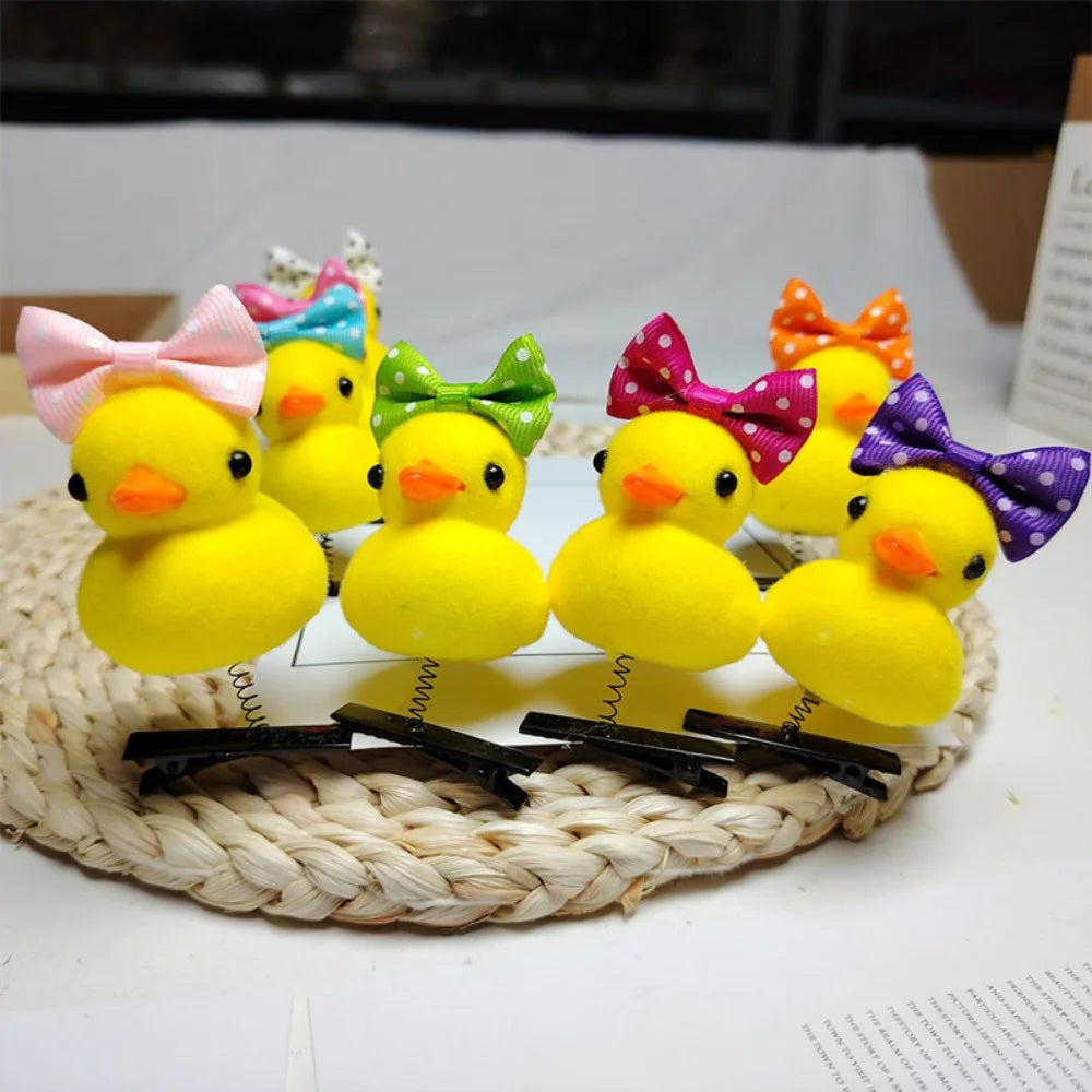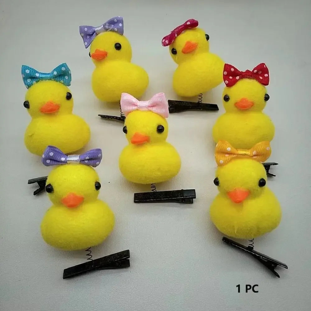 Add a touch of whimsy to your child's hairstyles with these charming yellow duck hair clips. Designed with a soft plush material, the adorable 3D duck ensures comfort throughout the day, making them perfect for sensitive scalps. Each clip is equipped with a durable spring mechanism to securely hold ponytails, braids, and more. Ideal for everyday wear or as a delightful gift, these clips bring a playful flair to any outfit.