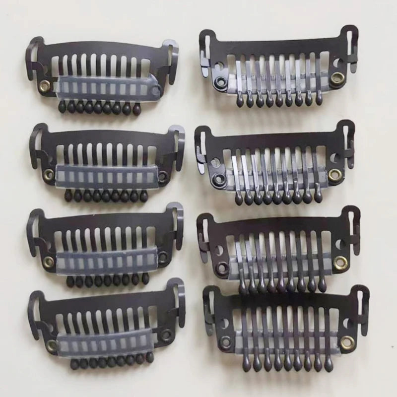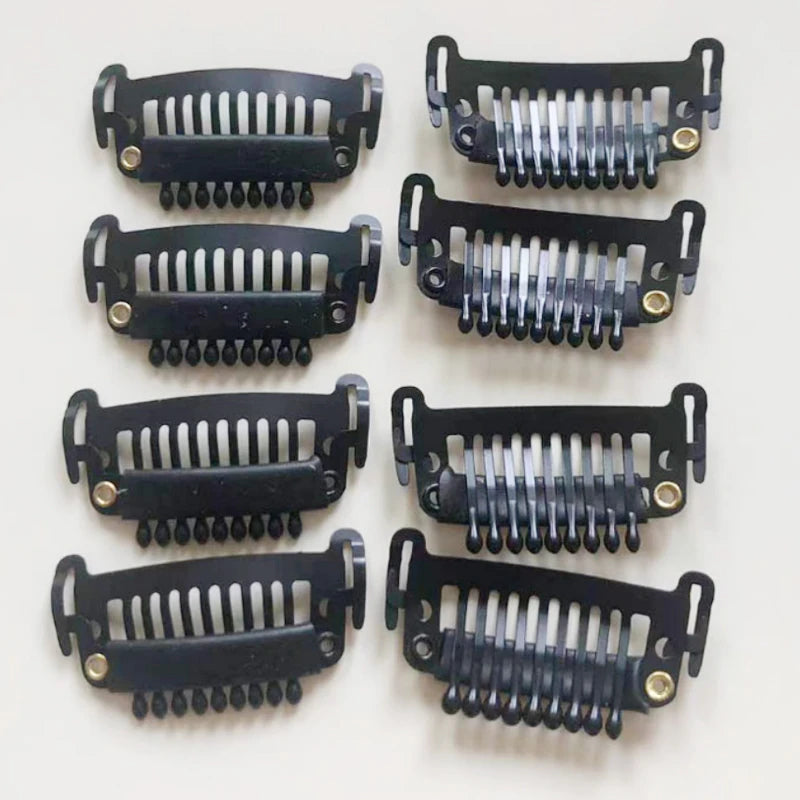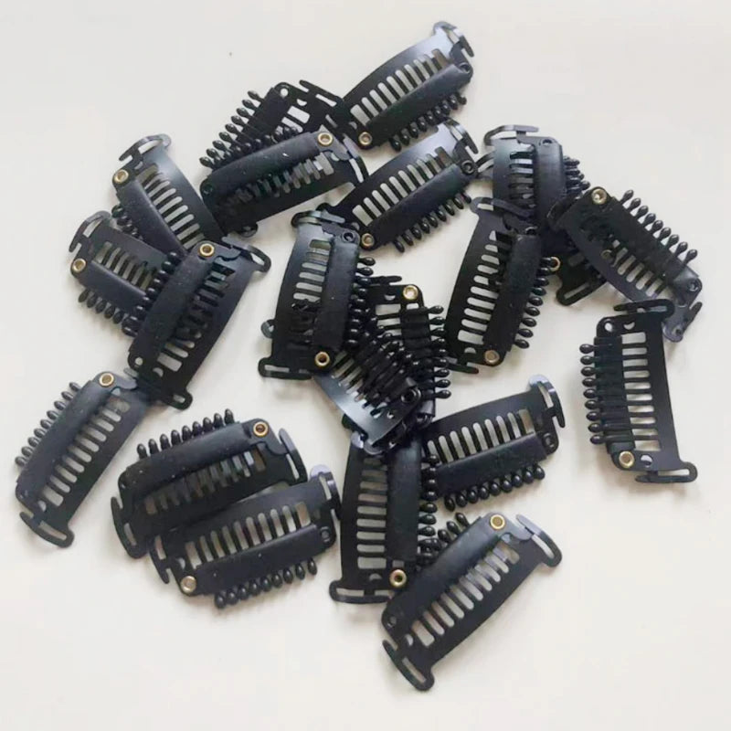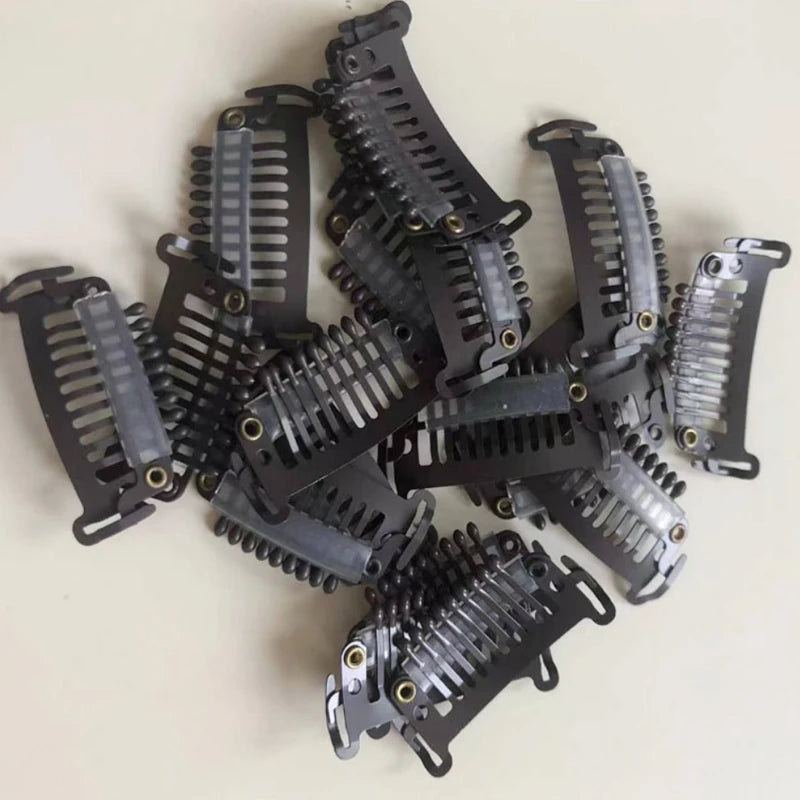 30x 3.5cm Snap Clips 9-Teeth for Hair Extensions & Wigs - Black/Brown