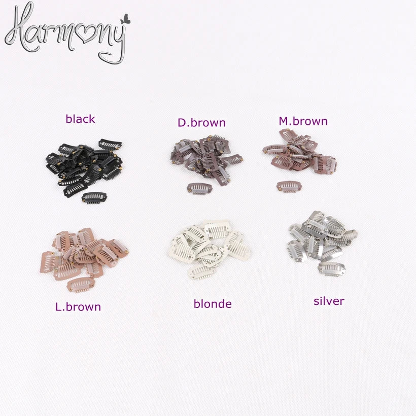 Introducing our versatile metal snap hair clips, perfect for everyday styling or professional use. These durable clips are available in six colors: Black, Dark Brown, Medium Brown, Light Brown, Silver, and Blonde, catering to a wide range of hair tones. Each pack includes 100 pieces, featuring a mix of sleek U-shaped clips with 6 teeth and I-shaped clips with 7 teeth, both measuring 2.3 cm. Customize your selection to suit your needs or enjoy a random assortment for a variety of styling options.