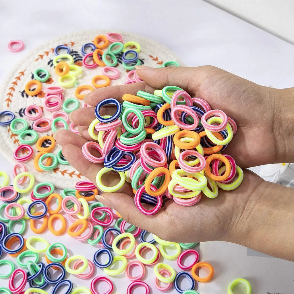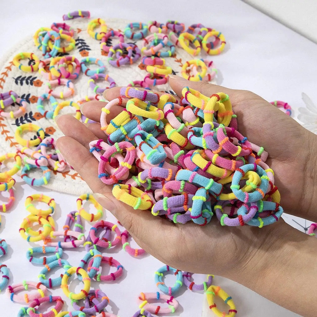 Colorful 100pcs Small Elastic Hair Ties - Non-Slip, Gentle for Kids & Women