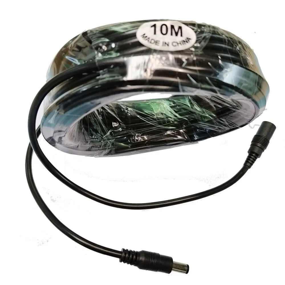 This DC cable is specifically crafted for camera power compatibility, ensuring optimal performance. Available in lengths of 10 meters (32.8 feet) or 5 meters (196.85 inches), it is compatible with 12-Volt IP security camera power adapters and any applications accepting a 2.1mm x 5.5mm plug. The cable operates efficiently within a temperature range of -20 to 65 degrees Celsius, making it perfect for LED strips, CCTV security cameras, lighting equipment, and more.