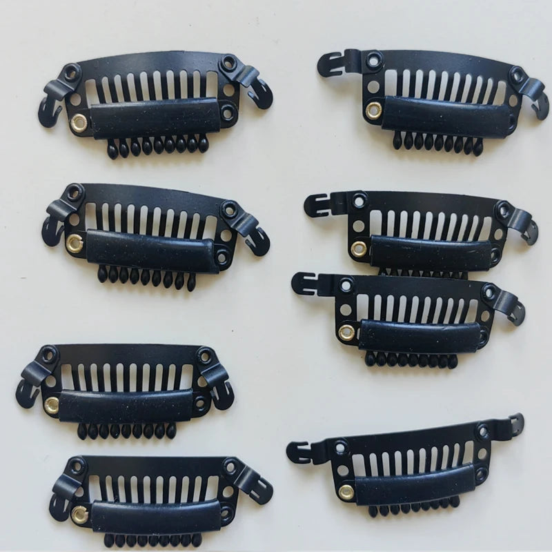 10pcs 3.2cm Black Snap Hair Clips 9 Teeth Weft Clips