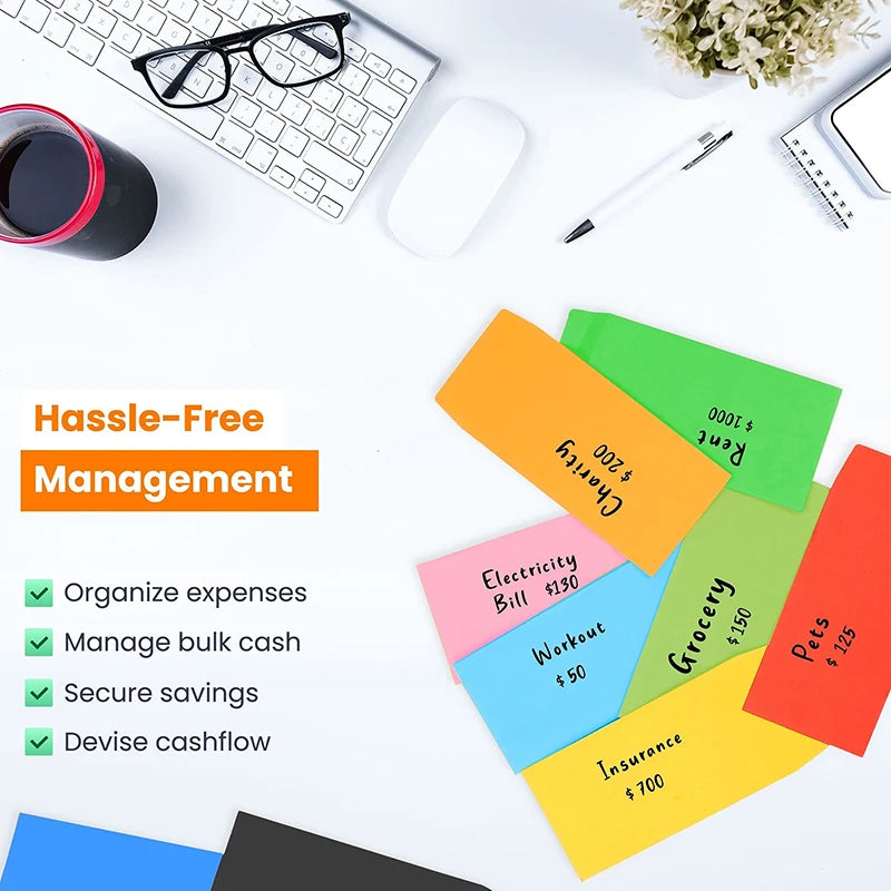 This pack includes 120 envelopes, each capable of holding up to 60 bills. Ideal for budgeting, these envelopes help streamline your personal finances. They also make for eco-friendly gifts, with sleek borders and fade-resistant colors offering a sustainable alternative to plastic packets.