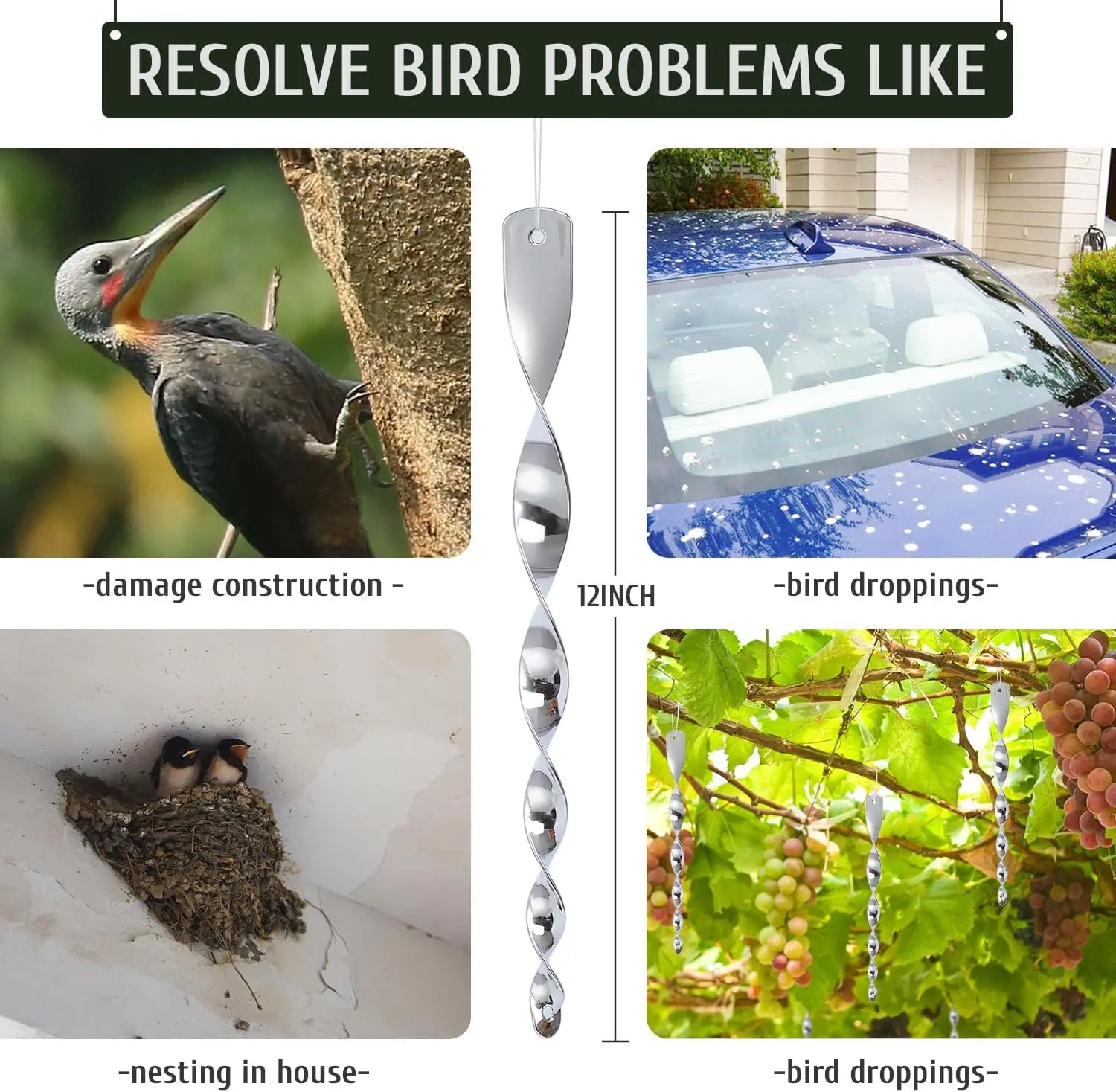 Elevate your outdoor space with our innovative Bird Repellent Rods, expertly crafted to naturally deter birds and keep your environment serene. Harnessing sunlight reflections, these rods ensure your garden or balcony remains clean and peaceful. The sophisticated twist design not only maximizes bird deterrence but also adds an elegant touch to your outdoor decor. Easy to install with the included rope, achieving effective bird protection has never been more stylish.