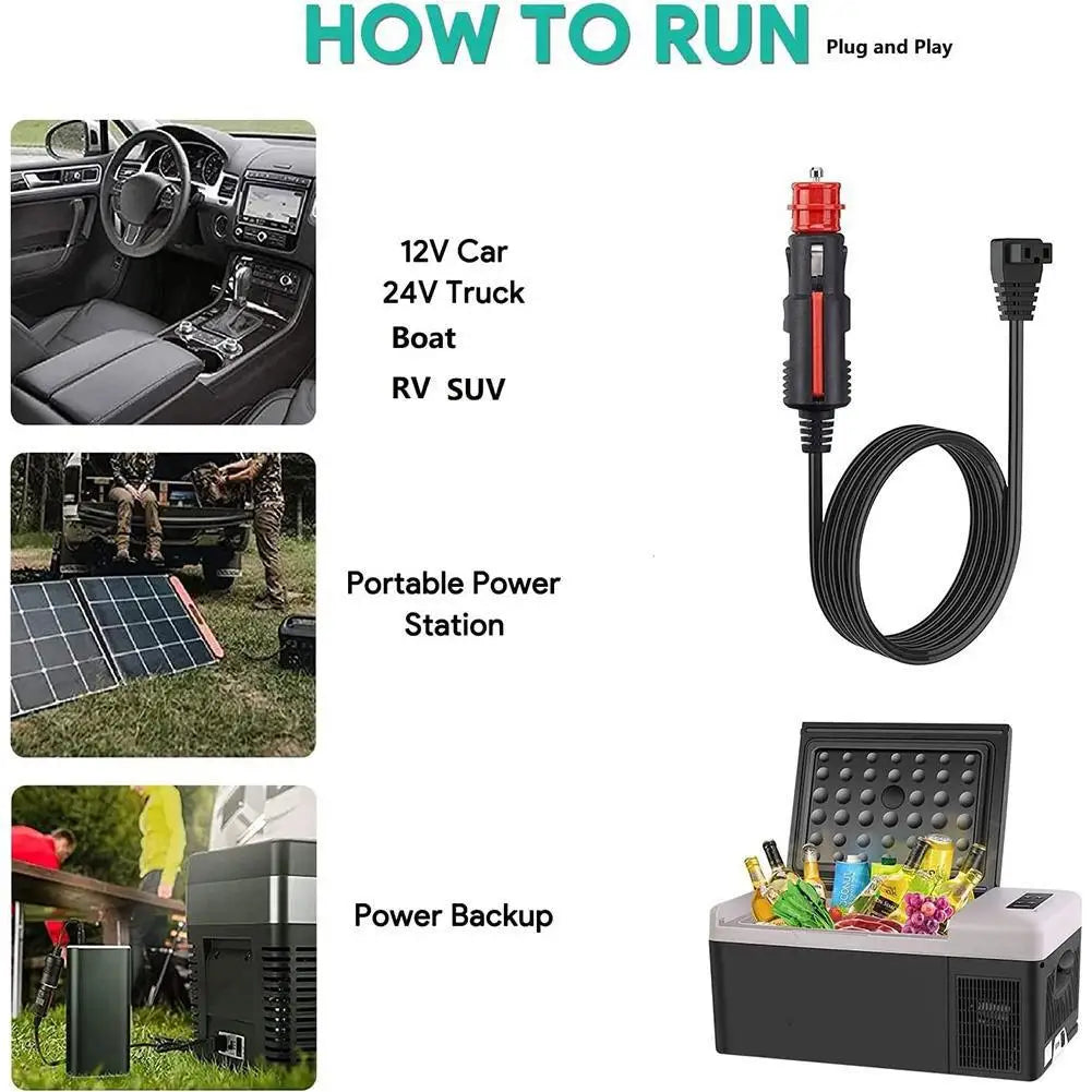 Introducing the versatile Car Refrigerator Extension Cable, designed to provide seamless power connectivity for your portable fridge. Compatible with a wide range of models, this cable is tailored for vehicles such as cars, trucks, RVs, and more, operating on DC 12V to 24V systems.
