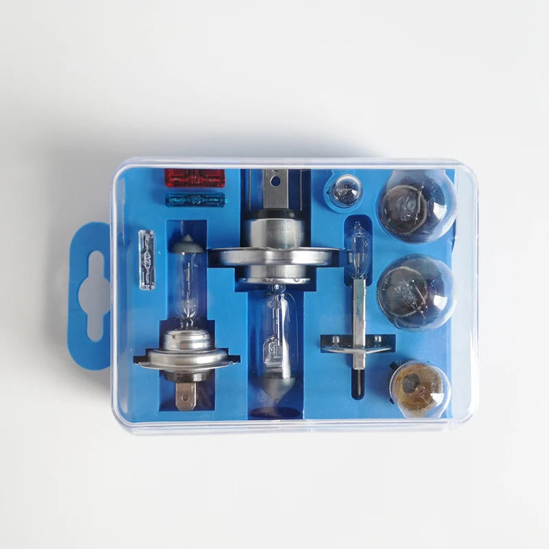 Introducing our comprehensive Car Emergency Kit Halogen Bulb Set, designed to ensure you're always prepared for unexpected lighting emergencies on the road. This versatile kit offers a range of halogen headlight bulbs and essential fuses, all neatly organized in a compact box for easy storage. Whether you need replacements for H4, H7, or H1 bulbs, this set has you covered with multiple combinations and spare options.