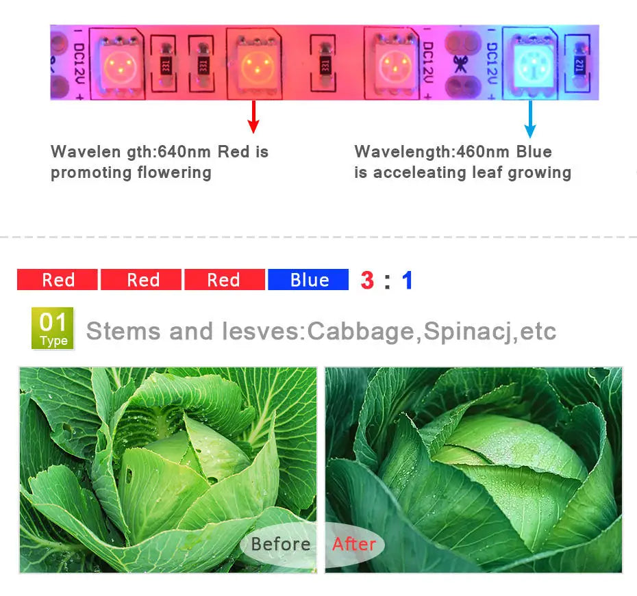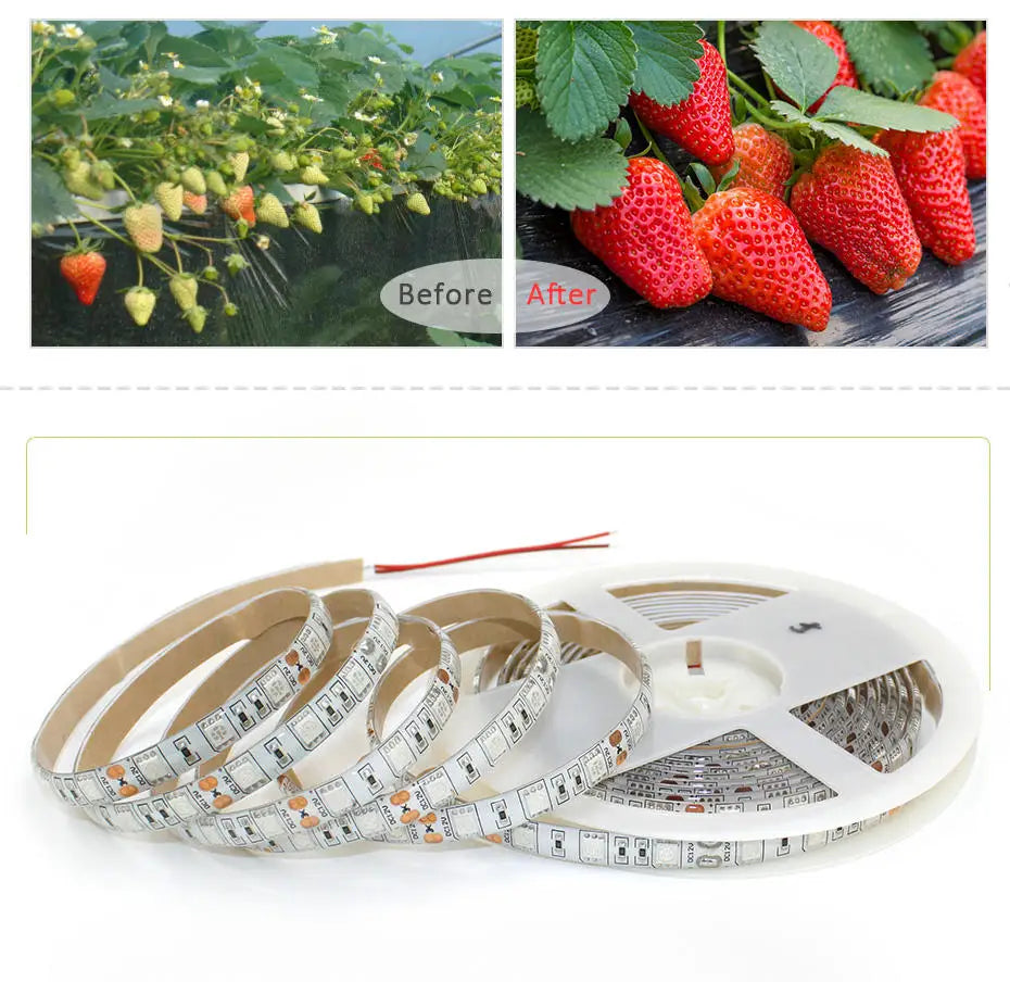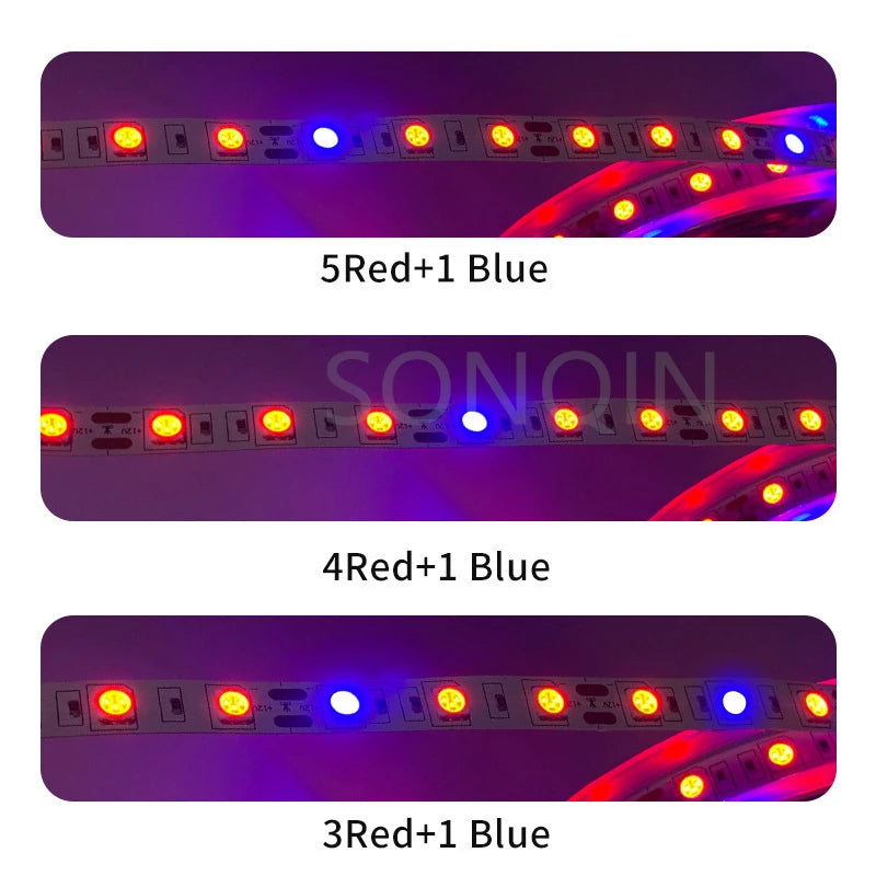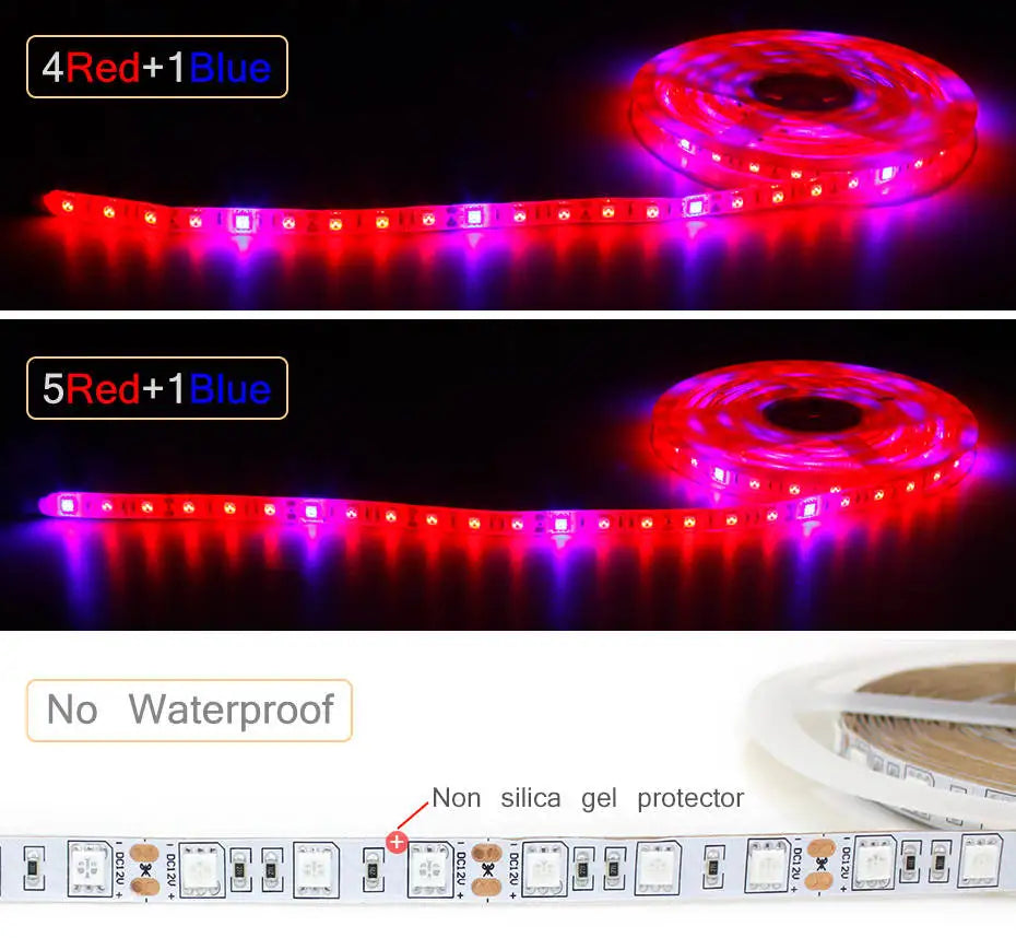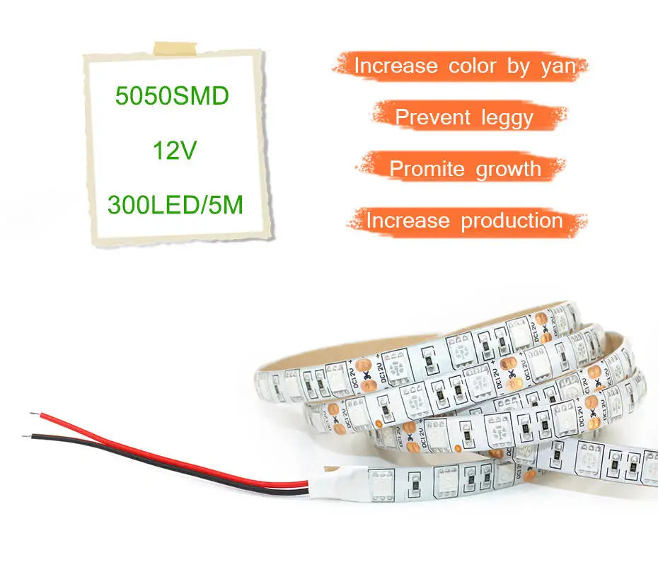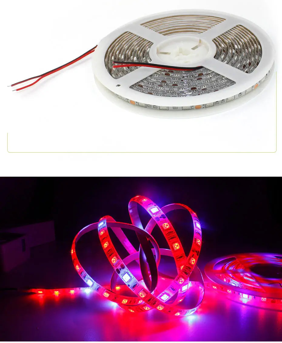 Full Spectrum LED Grow Light Strip 12V for Plants - 1m 2m 3m 5m Options for Seeds, Flowers, Hydroponics, Greenhouse, Tent