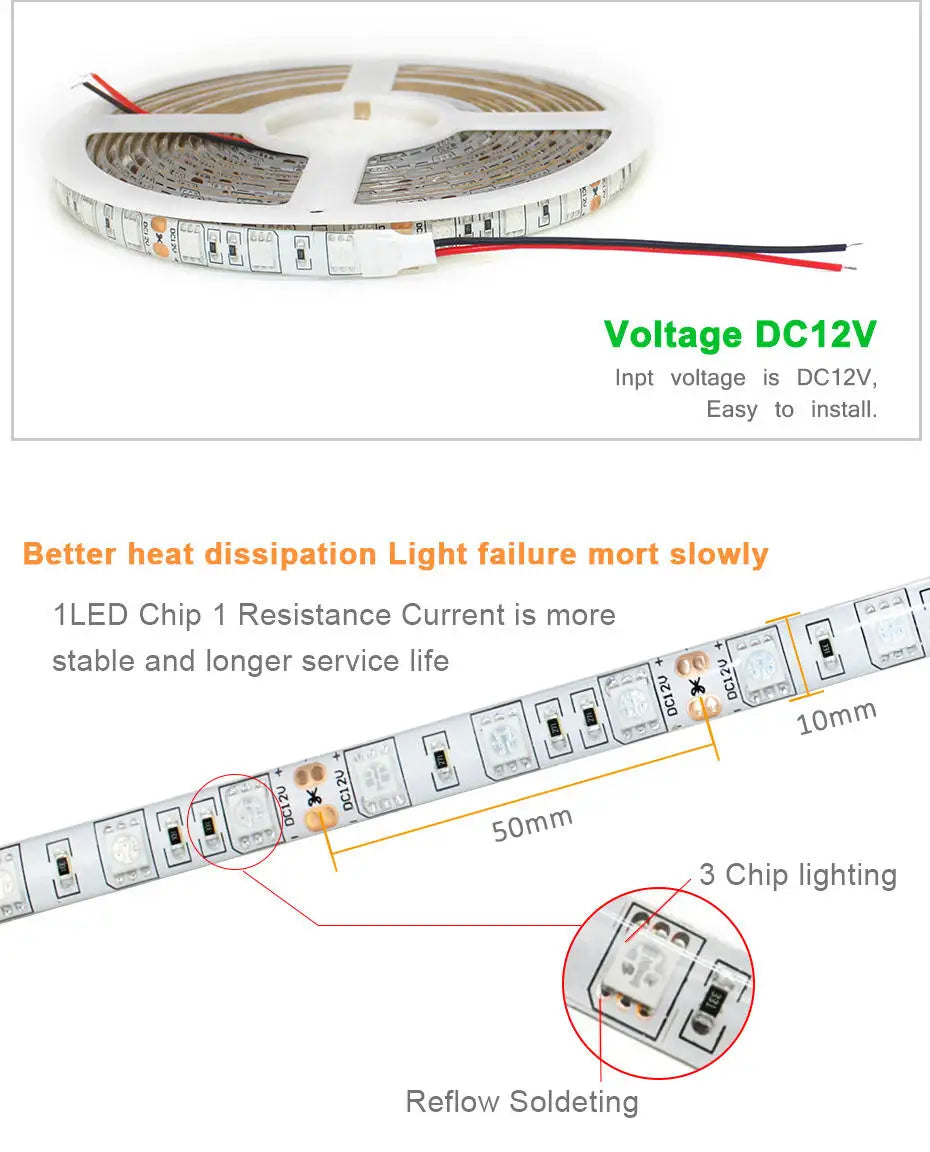 - Power Consumption: 8W/m, 36W/5m