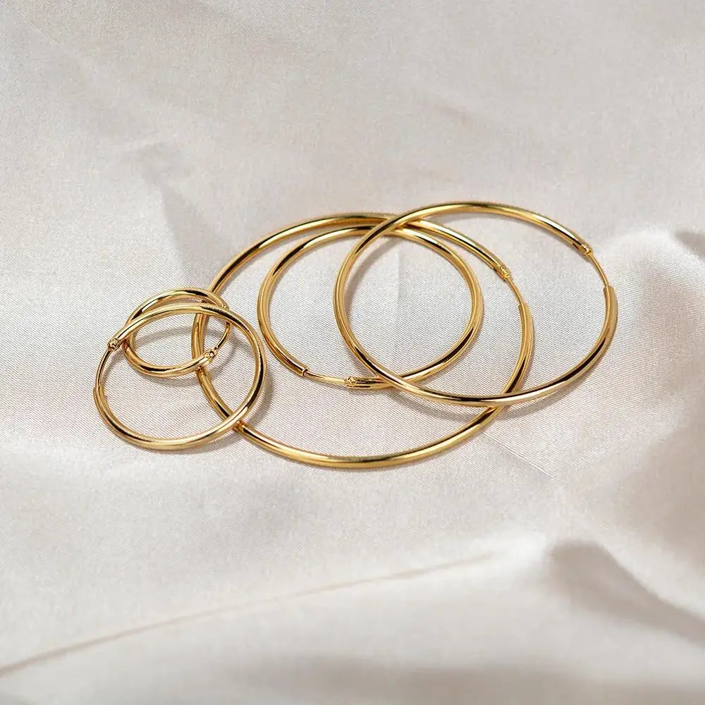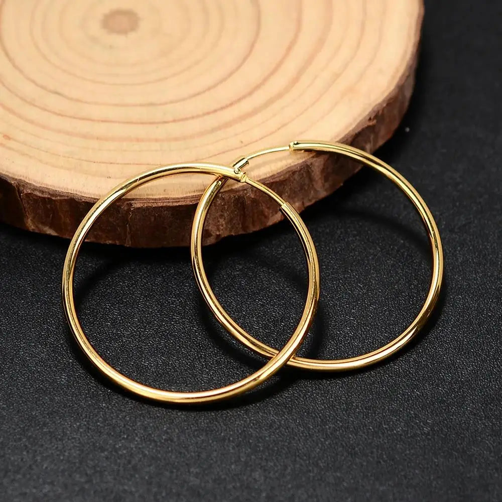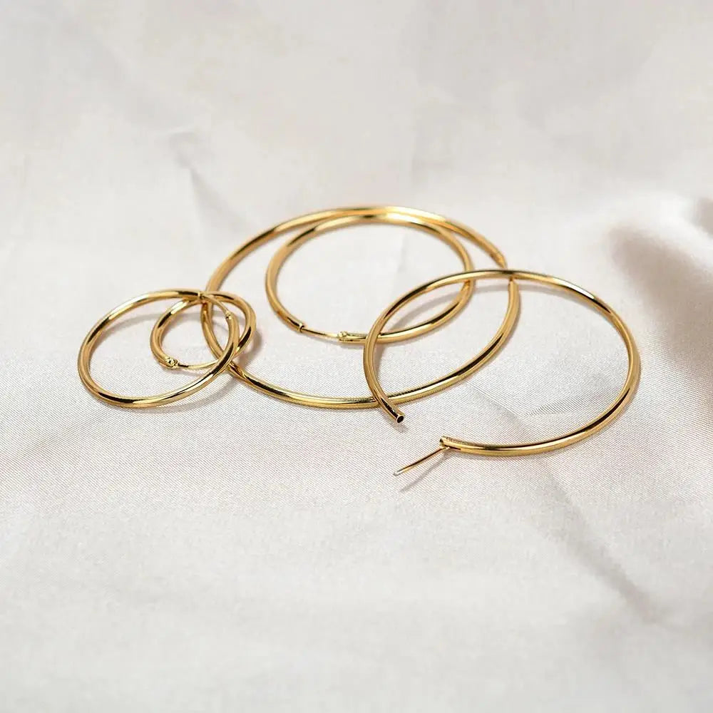 Gold Stainless Steel Hoop Earrings - Men's Classic Circle, Big/Small Round Trend Jewelry 2024
