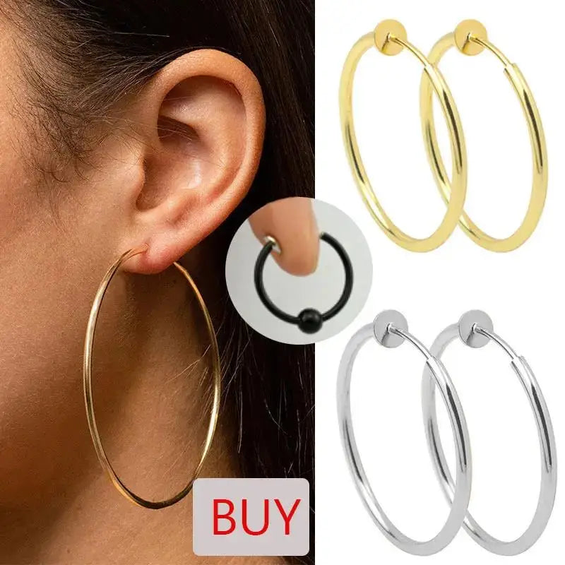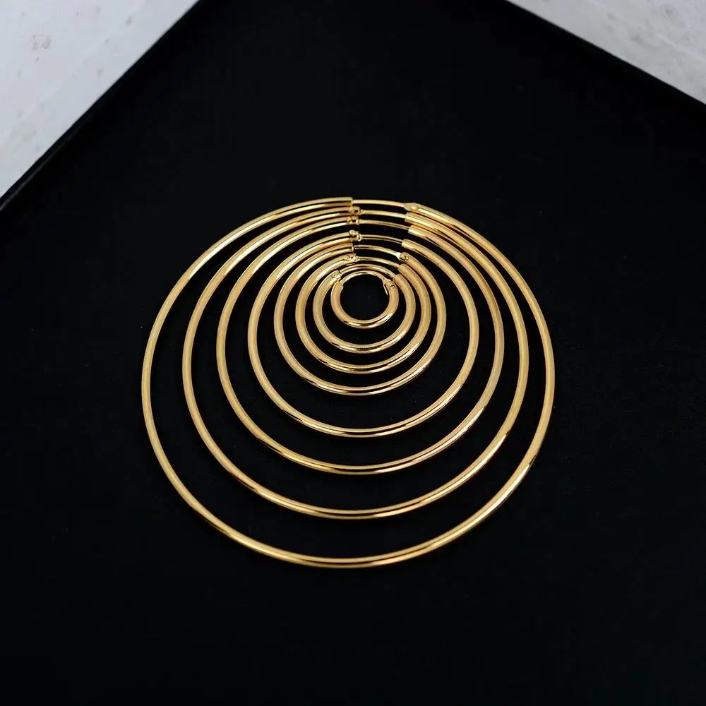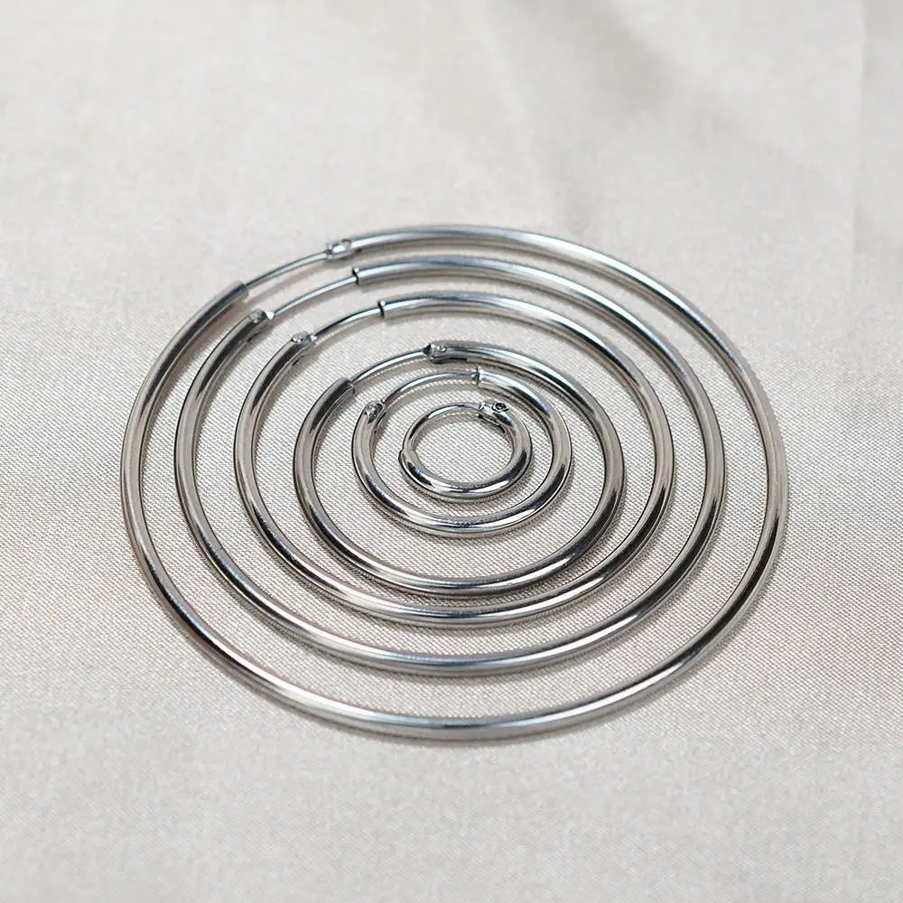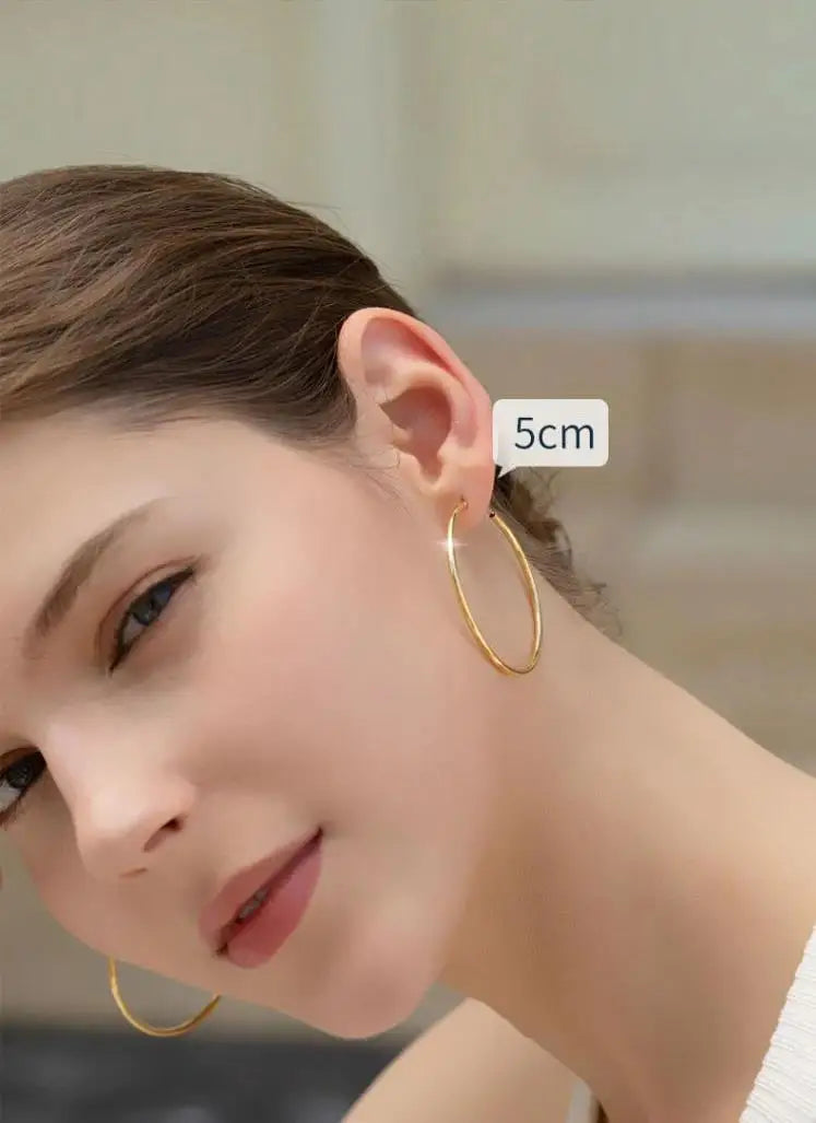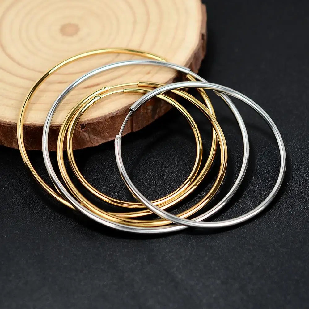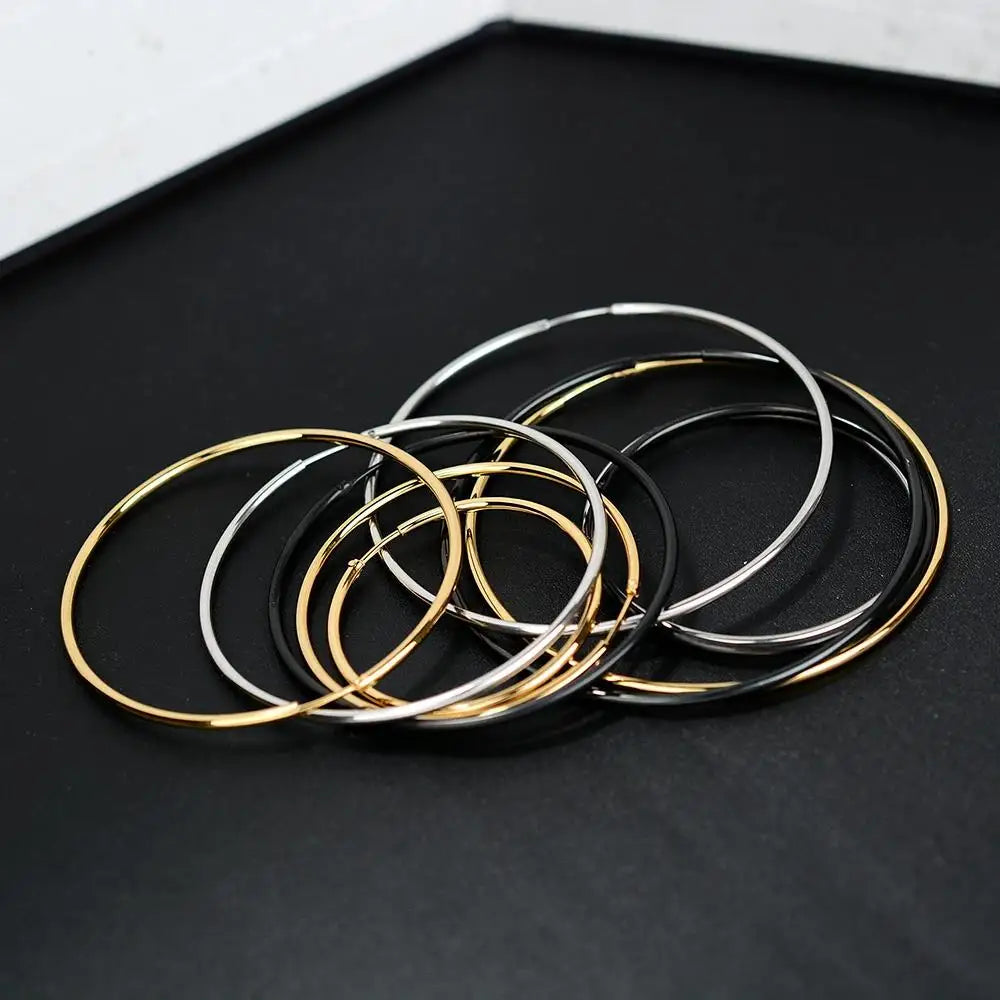Elevate your style with our classic and versatile stainless steel hoop earrings. Crafted for both men and women, these exaggerated geometric hoops are perfect for adding a touch of bold elegance to any outfit. Available in gold, silver, or black plating, they cater to various fashion tastes and occasions – whether it's a birthday, party, wedding, or daily wear.