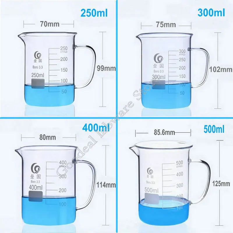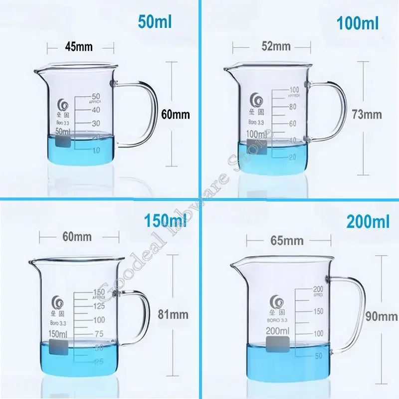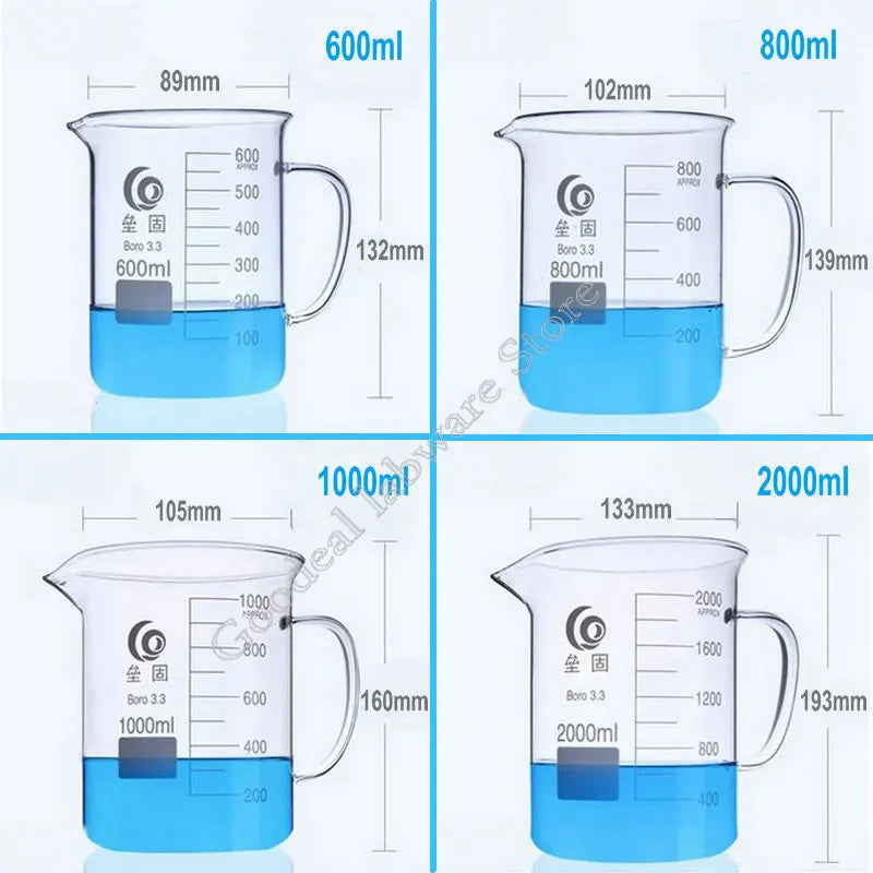 Graduated Borosilicate Glass Beaker with Handle, 50ml-2000ml, Lab Glassware 3.3