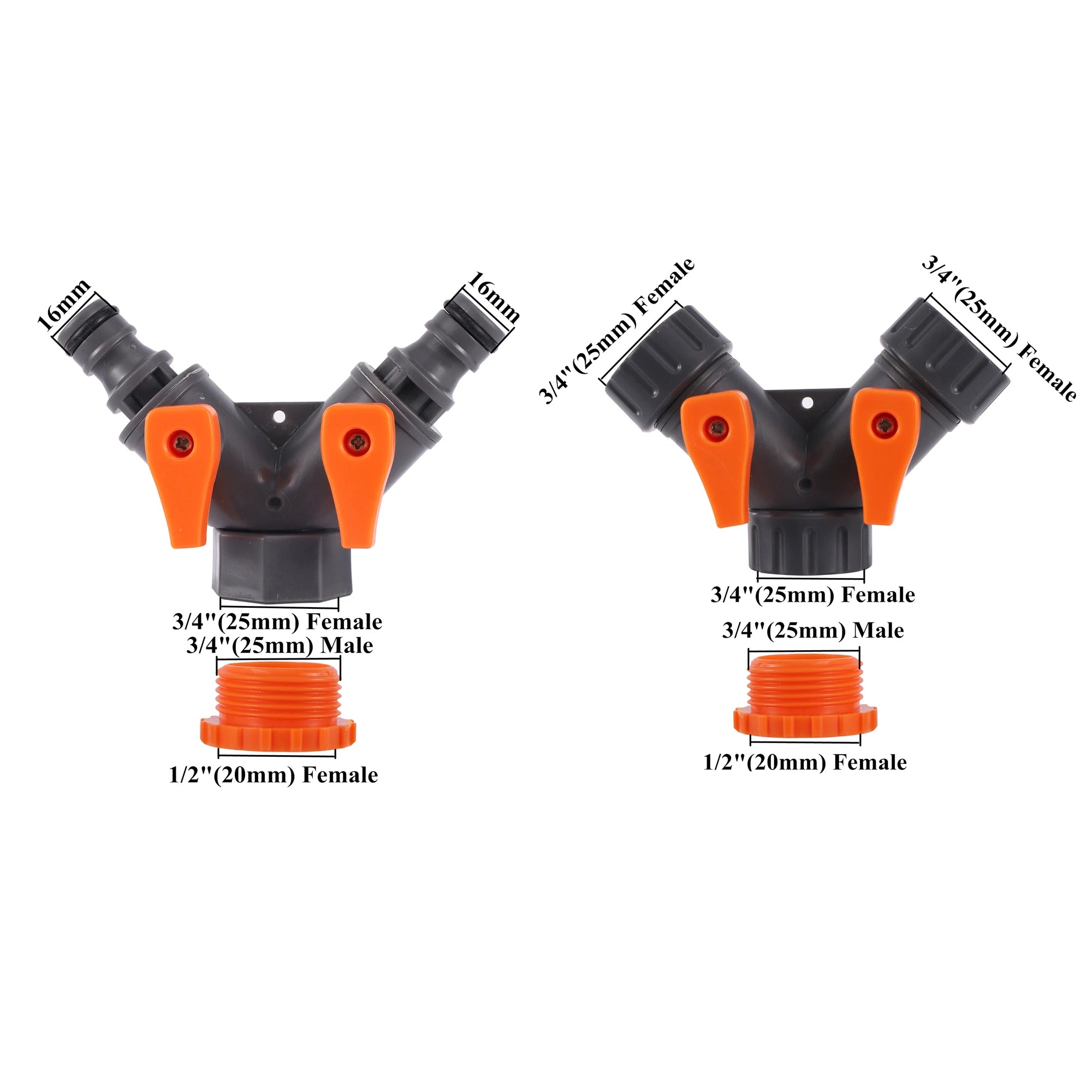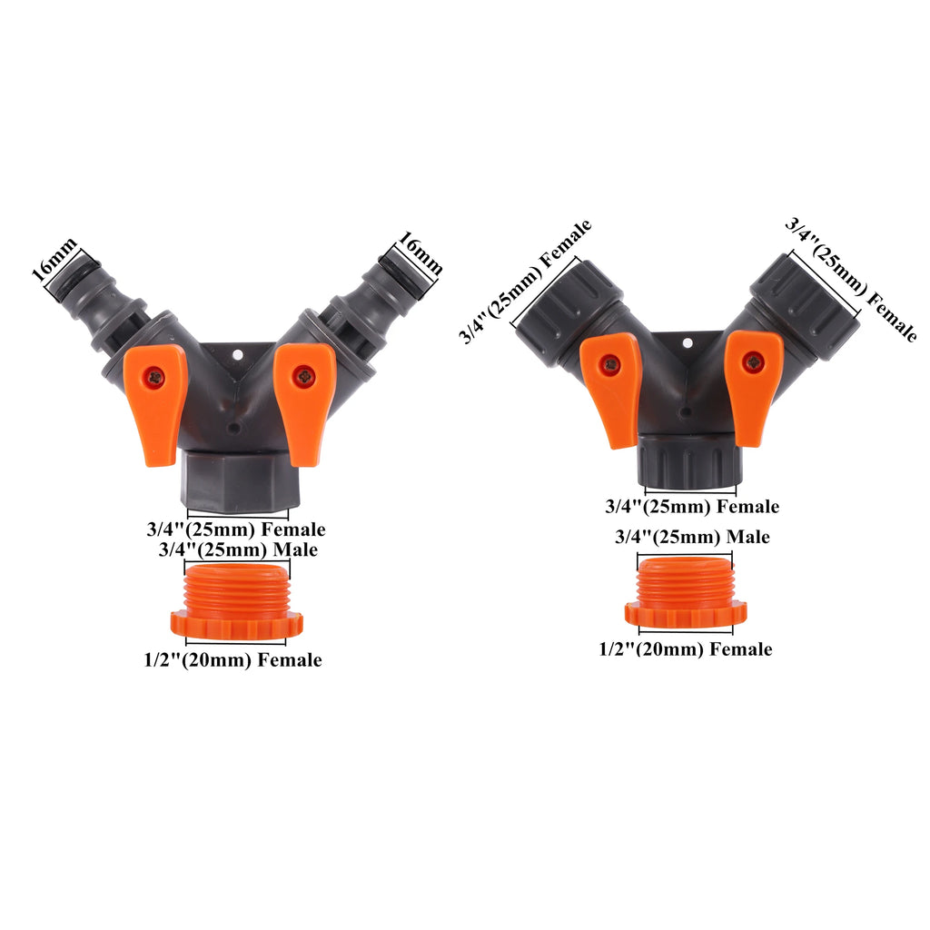 2-Way Garden Hose Y Splitter Adjustable Valves for 1/2 & 3/4 Inch Hoses