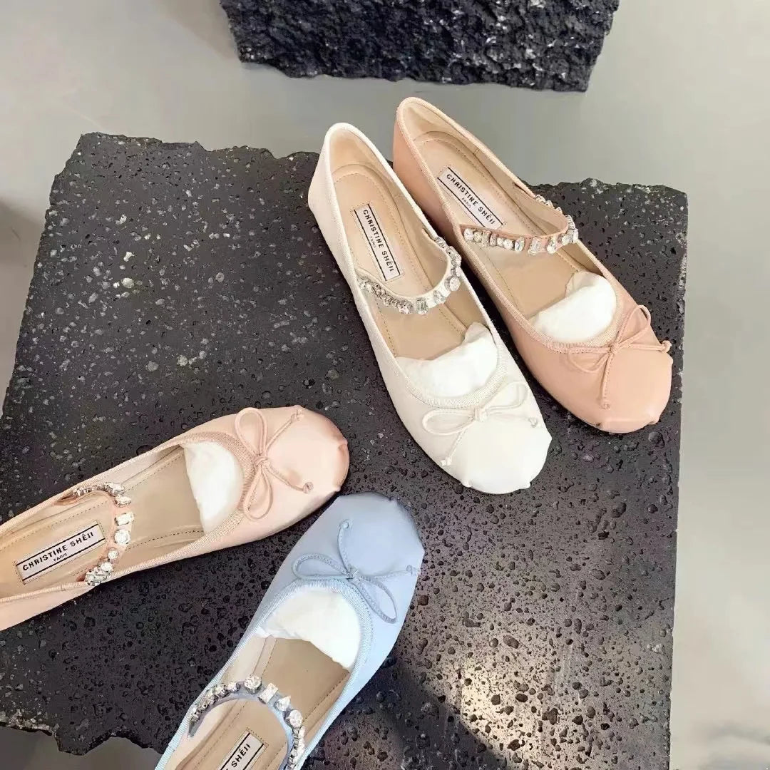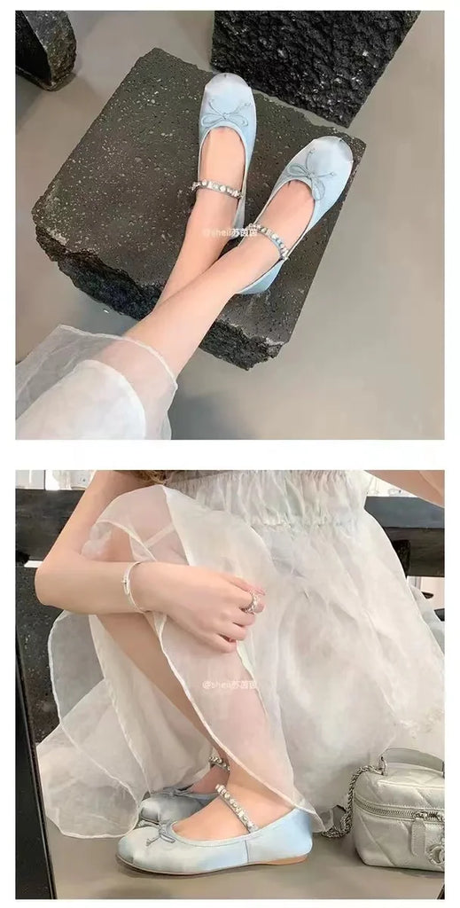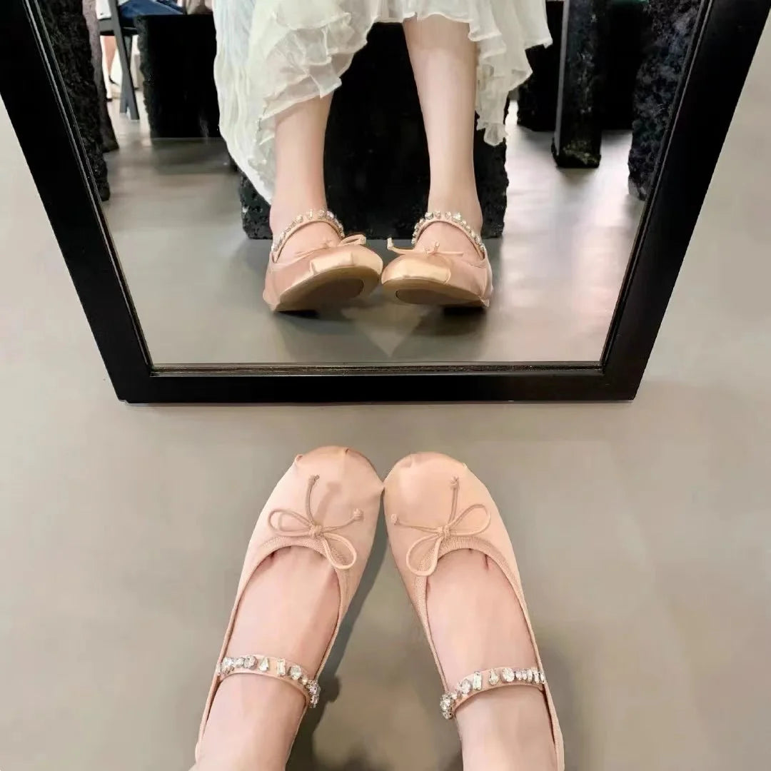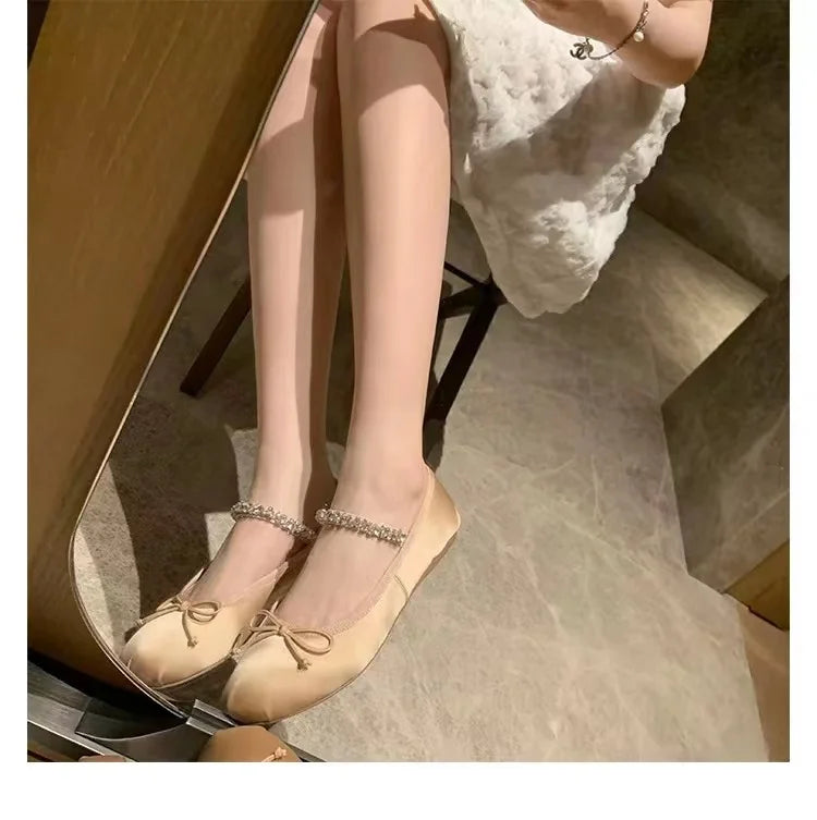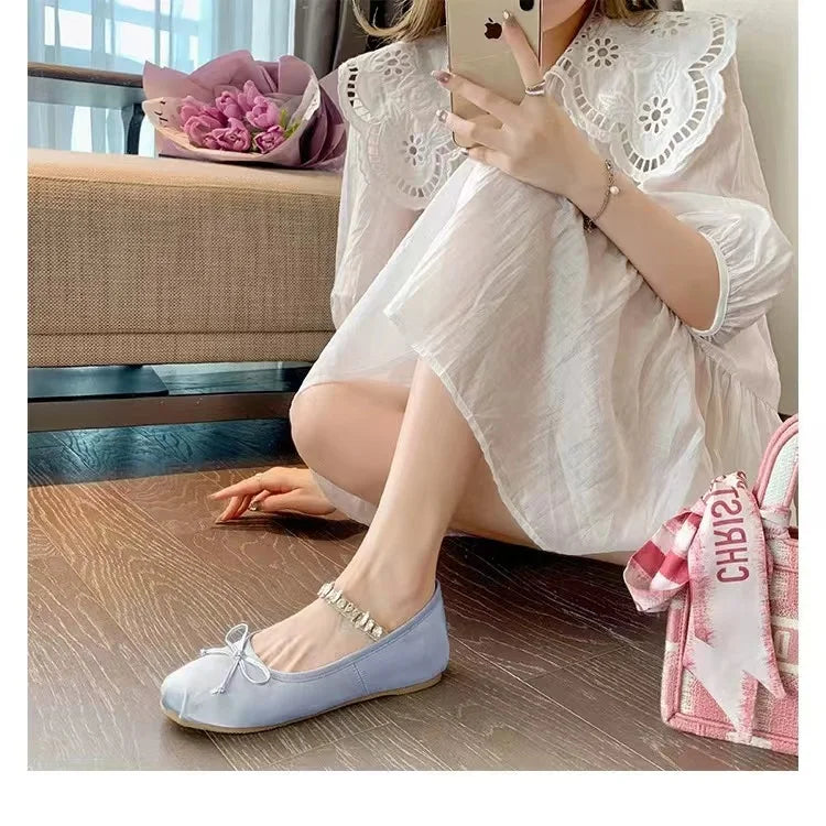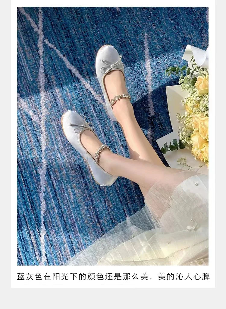 2023 Luxury Satin Silk Ballet Flats for Women - Square Toe Bowtie Elastic Band Ballerina Loafers