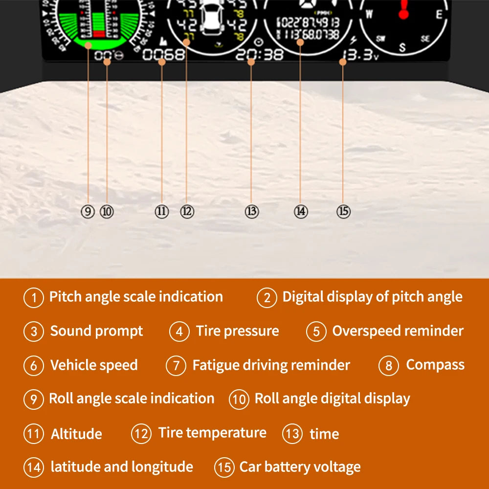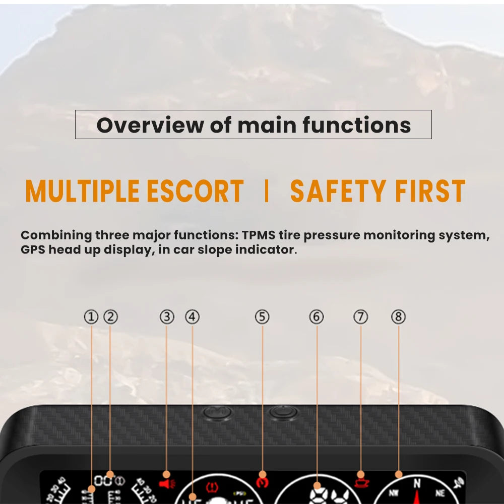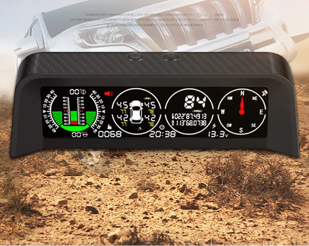 2023 4-in-1 GPS TPMS Tire Monitor & Inclinometer Gauge with Overspeed Reminder & Temperature Display