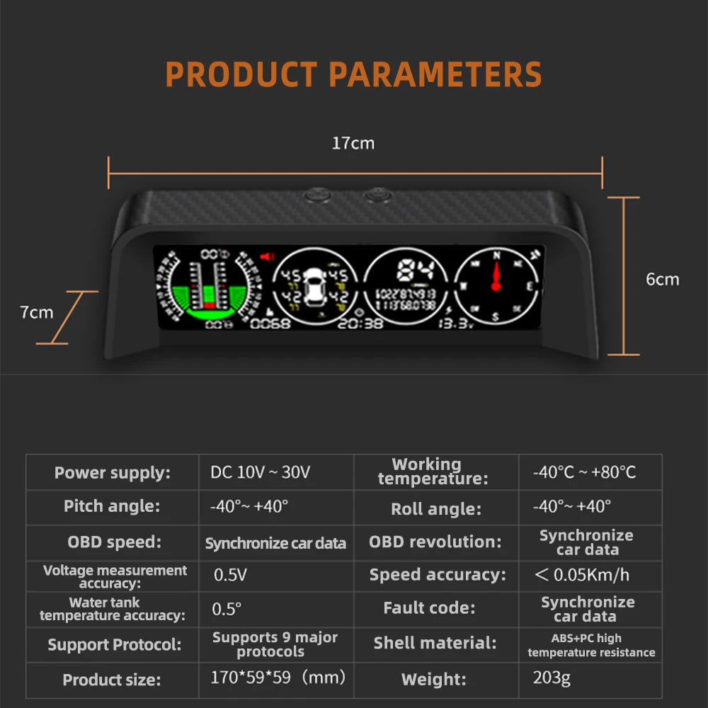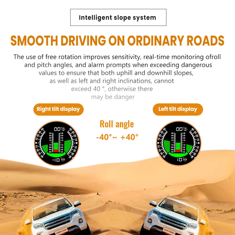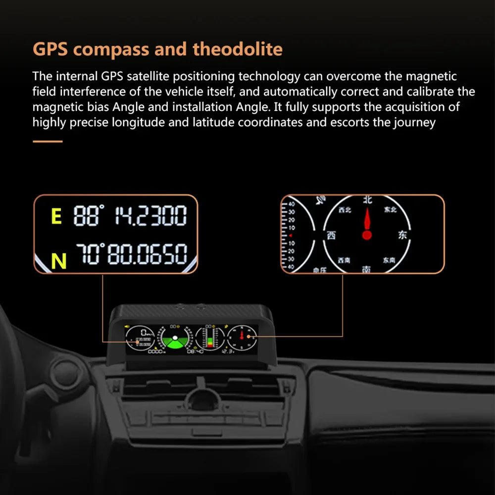 Introducing the X91 GPS Smart Slope Meter, a versatile tool for safe and informed driving. This advanced multi-functional device is compatible with 99% of car models, providing real-time data on speed, tilt, and pitch angles. With an integrated safety alarm system, it alerts you when angles exceed safe thresholds, ensuring a secure driving experience on any terrain.