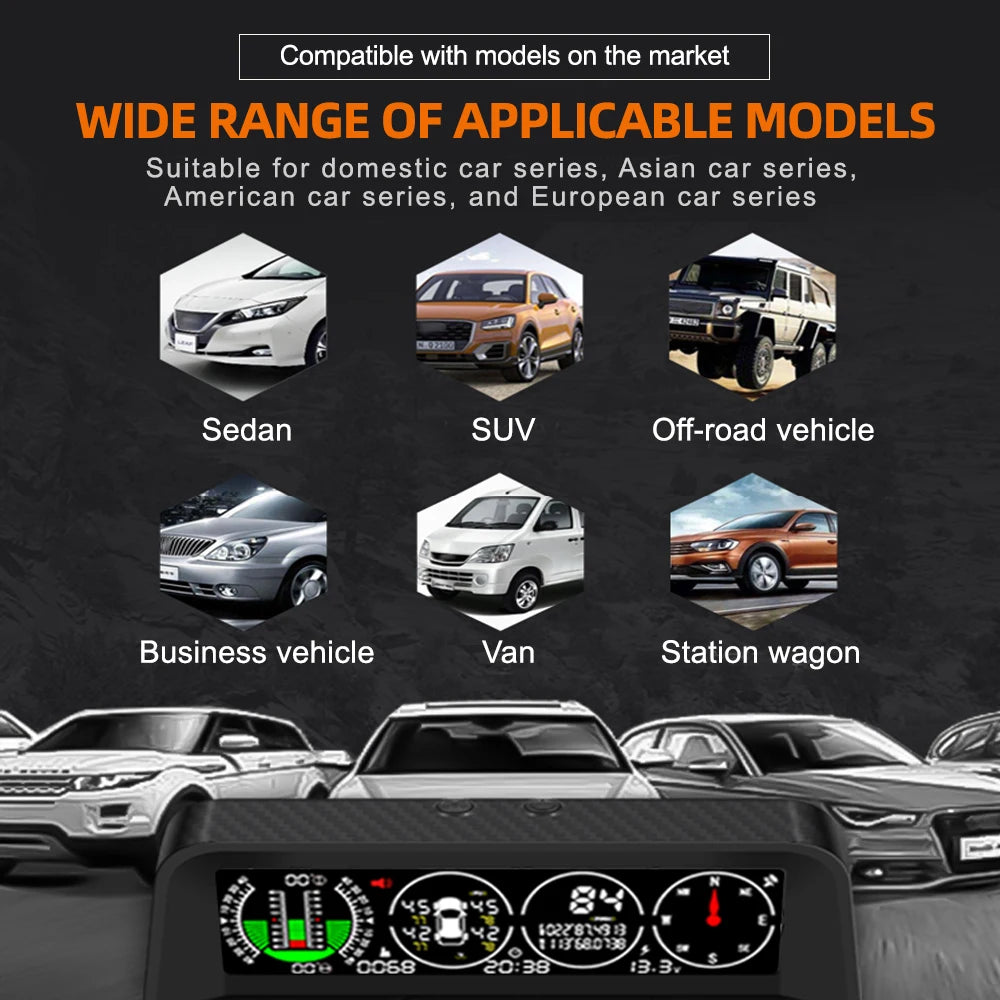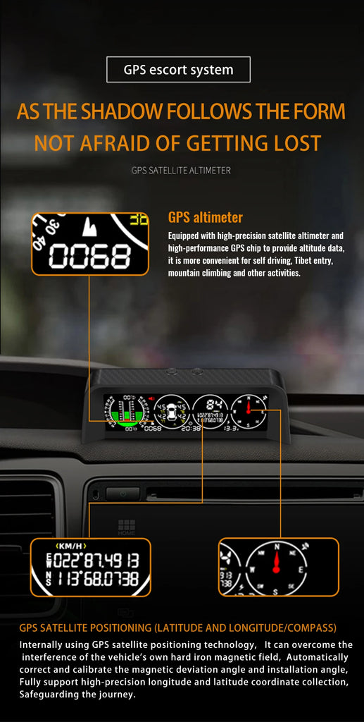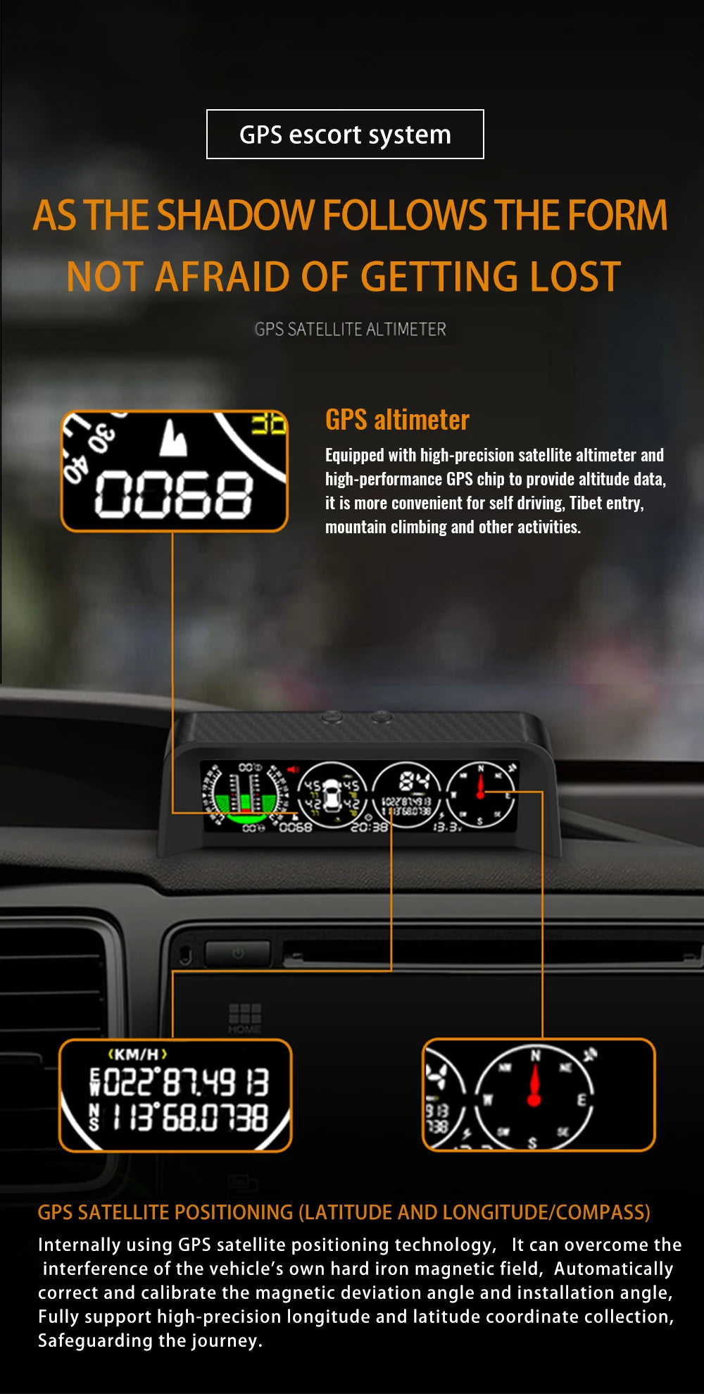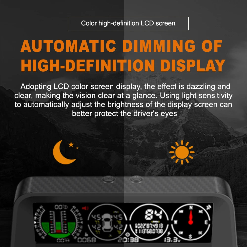 Introducing the X91 GPS Smart Slope Meter, a versatile tool for safe and informed driving. This advanced multi-functional device is compatible with 99% of car models, providing real-time data on speed, tilt, and pitch angles. With an integrated safety alarm system, it alerts you when angles exceed safe thresholds, ensuring a secure driving experience on any terrain.