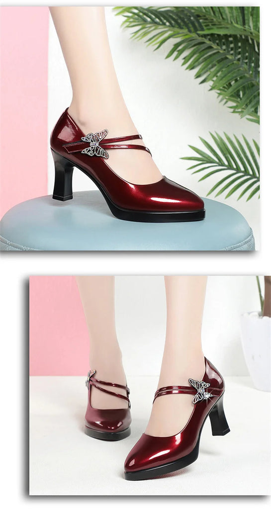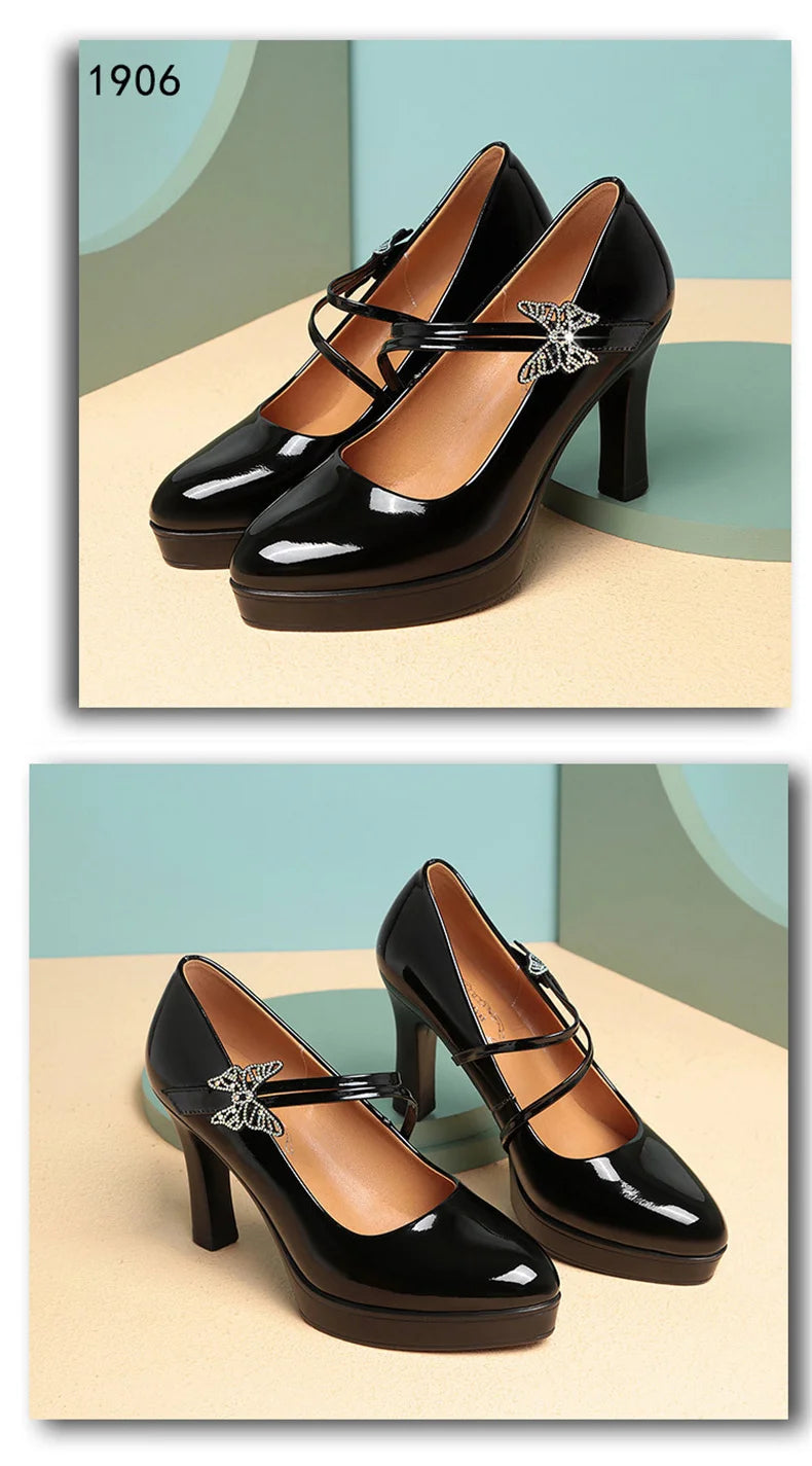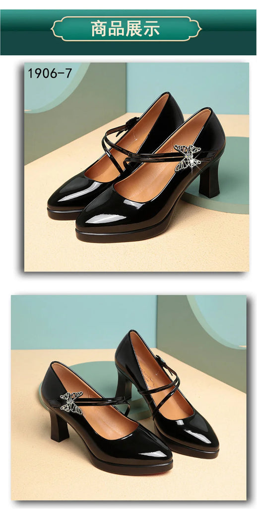 2023 High-Heeled Leather Wedding & Dance Shoes for Women - Spring/Autumn Bridal Catwalk Style
