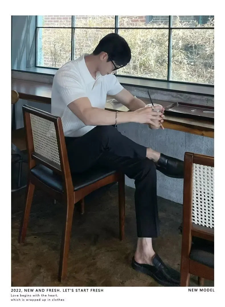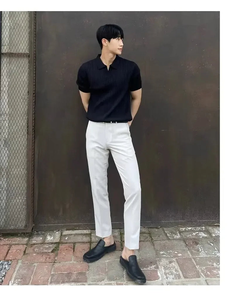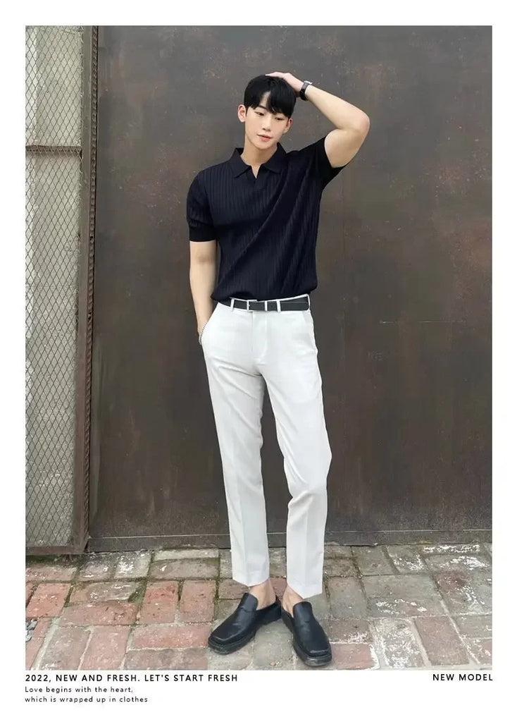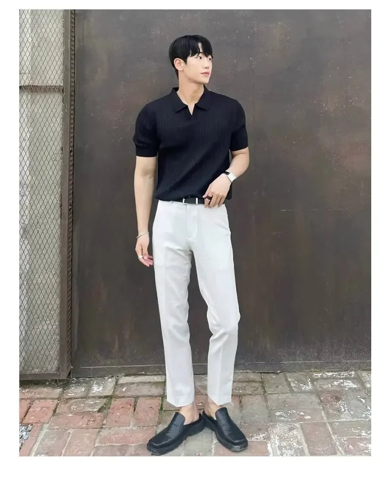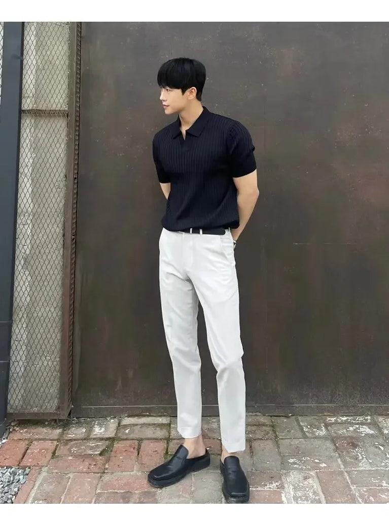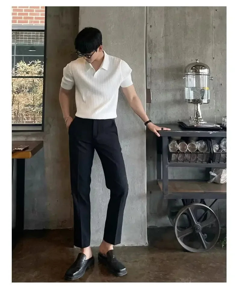 Elevate your summer style with this premium ice silk polo shirt, designed for ultimate comfort and coolness. Featuring a chic V-neck design and striped knitted base, it perfectly balances sophistication and trendiness. Ideal for casual settings, this short-sleeved T-shirt effortlessly complements your summer wardrobe. Its versatility allows pairing with various outfits for any occasion.