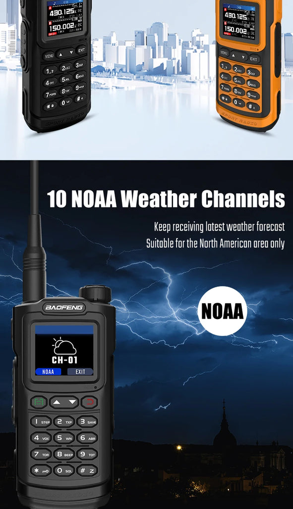 2025 Long Range Walkie Talkie 1000 Channel UHF VHF Ham Radio FM USB-C Charge Waterproof 2-Way Radio