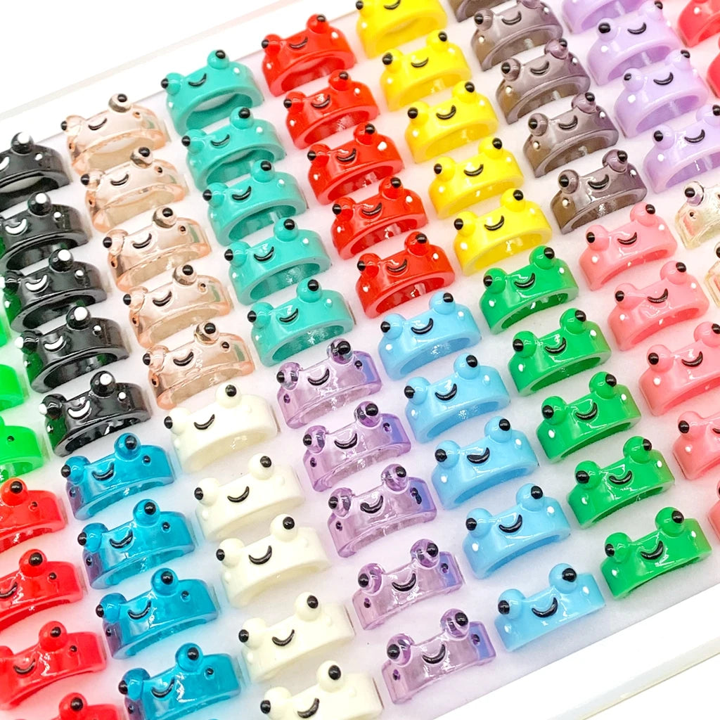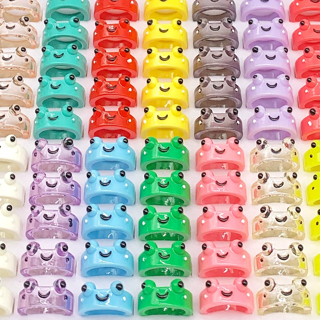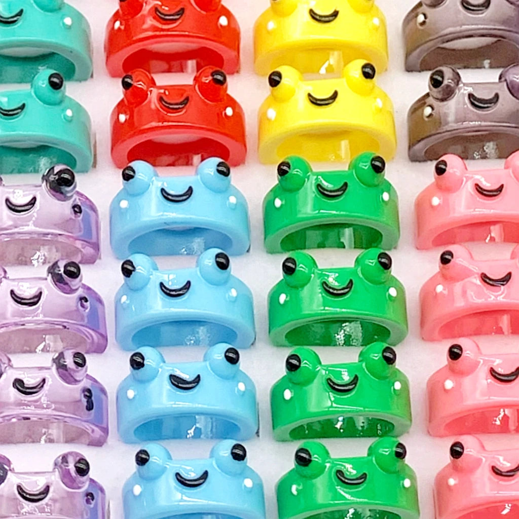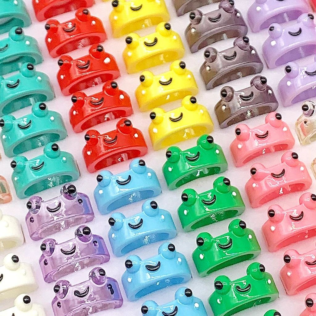 20pcs Cute Colorful Frog Cartoon Resin Rings Women Fashion Animal Charm Party Jewelry Accessories