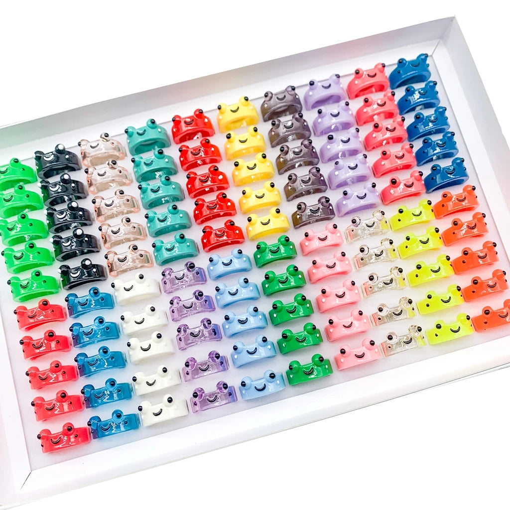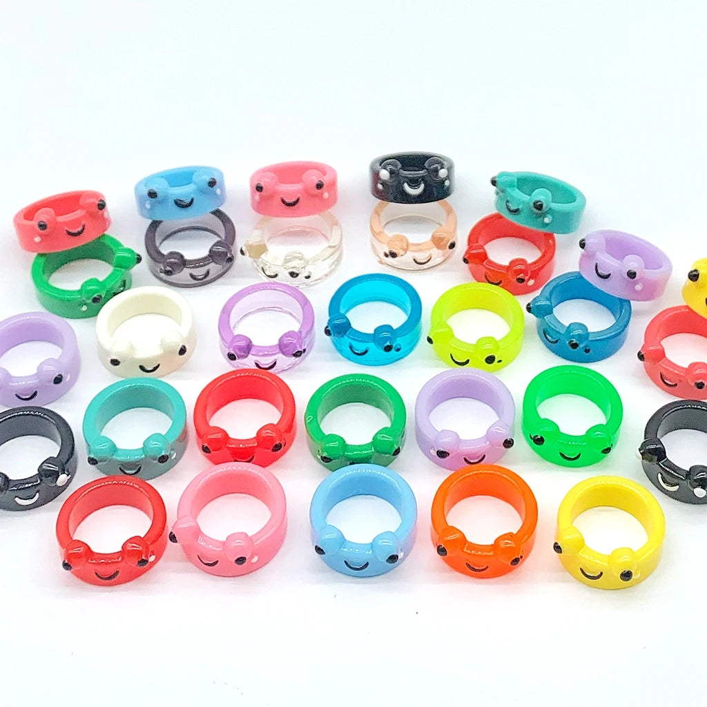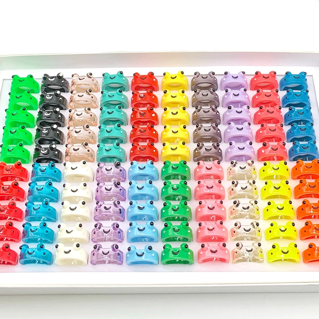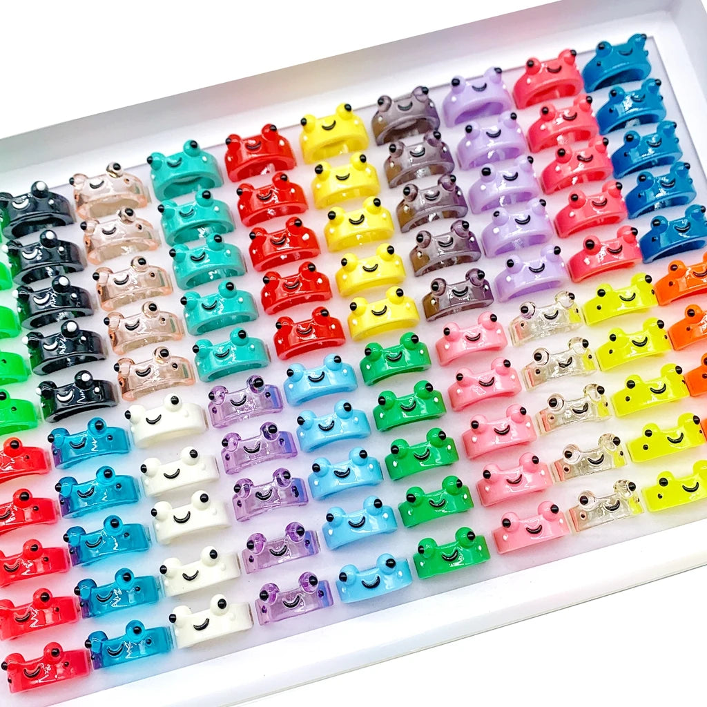 20pcs Cute Colorful Frog Cartoon Resin Rings Women Fashion Animal Charm Party Jewelry Accessories